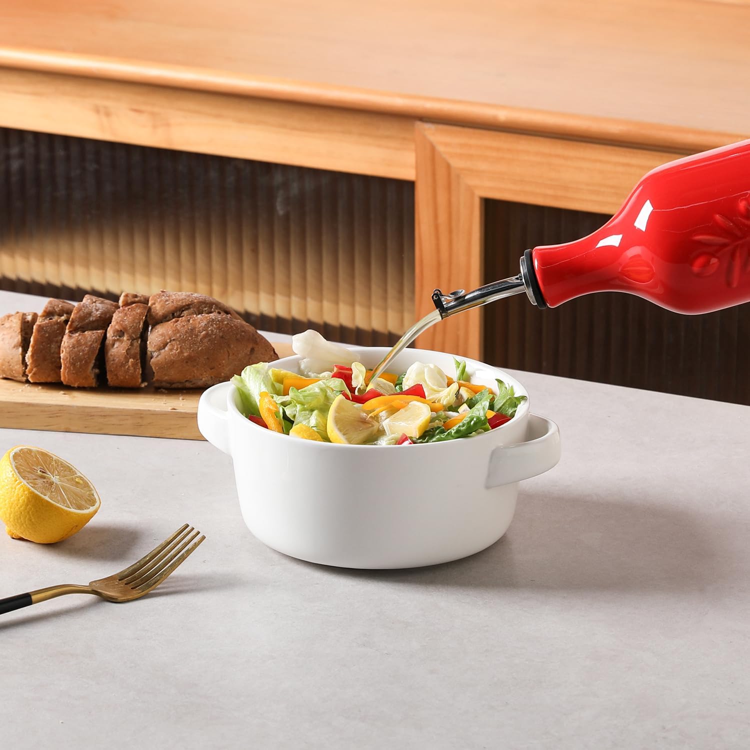 - Durable and Precise Pouring Control - The olive oil bottle fired at high temperatures, to form a smooth glazed surface, strength and durability. The carefully designed spout that allows for easy pouring without any messy drips or spills.