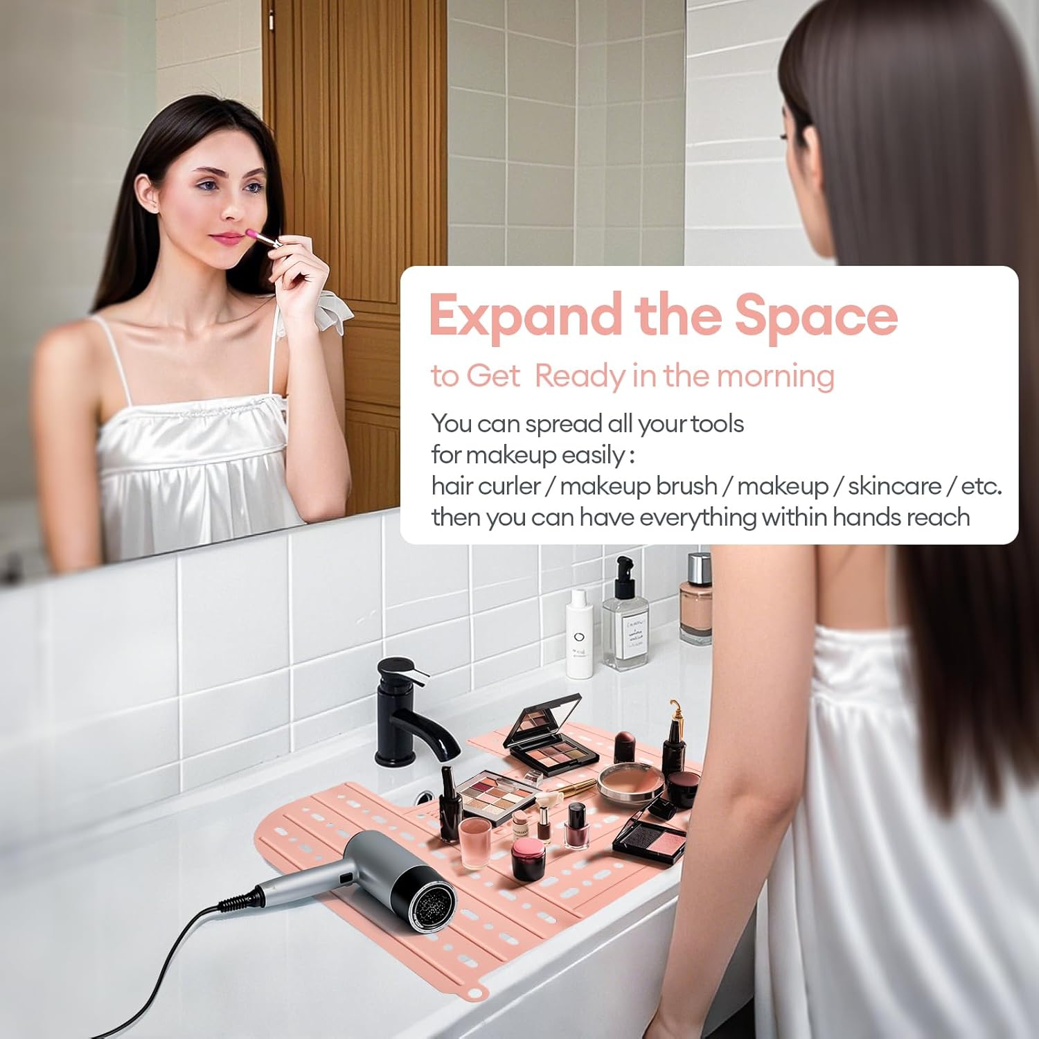 - Sturdy and durable: The sink cover for counter space is made of soft heat-resistant silicone and can withstand temperatures up to 480°F. There is no need to worry about hair dryers, curling irons, and other heating tools scalding the desktop; there is a steel rod running through the silicone, which is high temperature resistant and has a high load-bearing capacity. It is not easy to collapse and can bear up to 7 pounds.