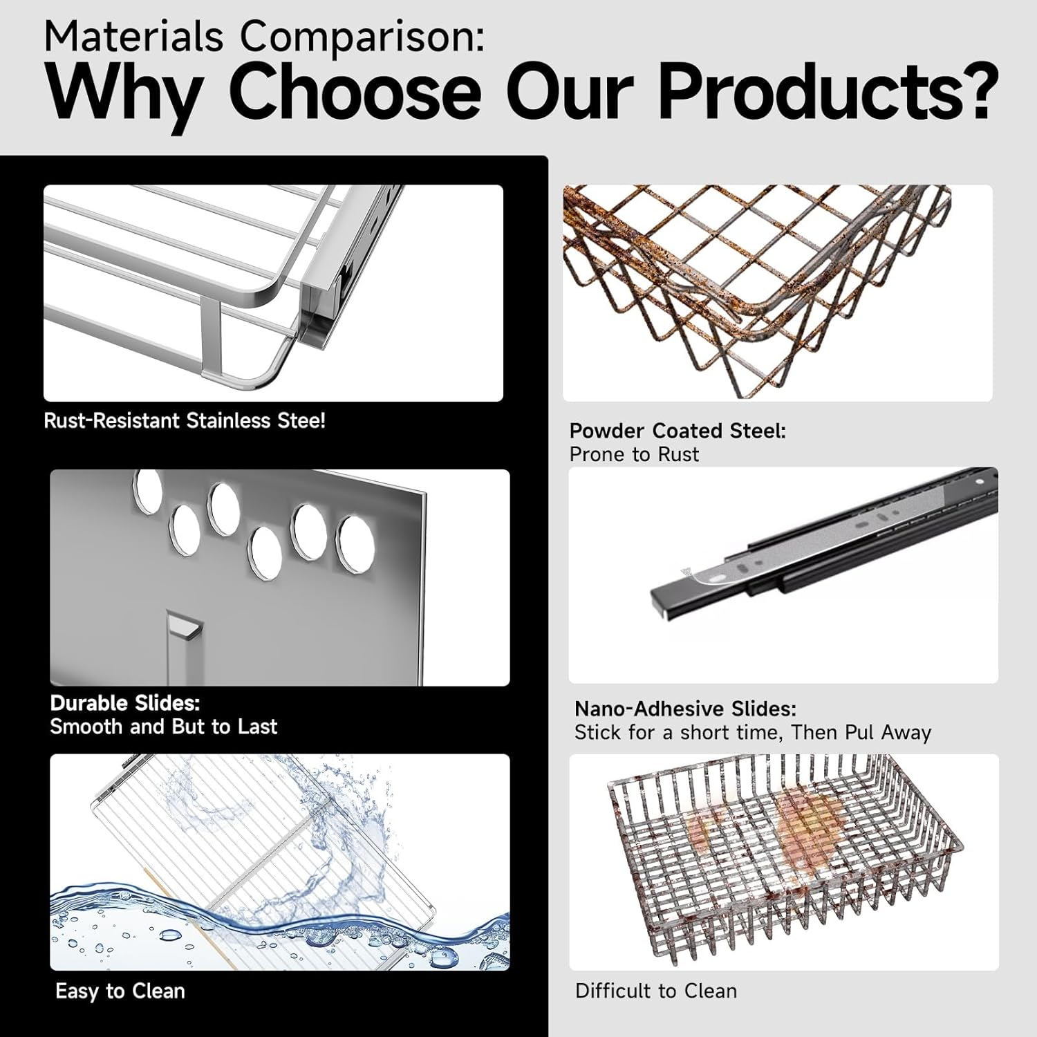 - Smooth Slide-Out Organizer: Industrial-grade ball bearing system ensures quiet and smooth sliding every time. Don't have to worry about noise when you pull out and push in.
