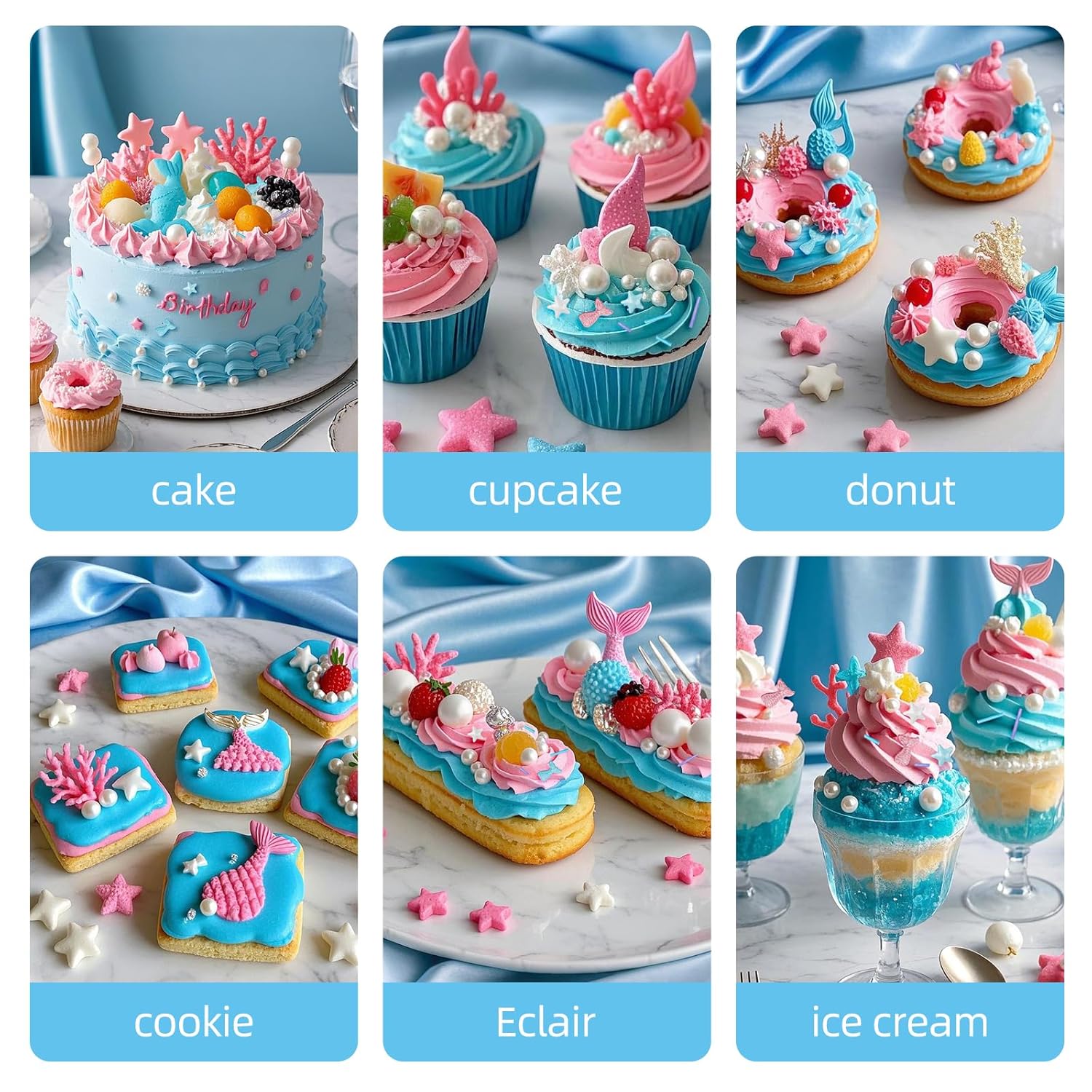 - Versatile Dessert Decoration: Our fun sprinkles includes Mermaid tails and stars, Edible Pearl Sprinkles,colorful candy sprinkle.Perfect for meeting all your baking decoration needs.The sugar decorations are edibled candies. It is normal for large candies to have a hard texture and can be eaten with confidence.After baking, decorate the cookies or cake with pearl sugar to avoid melting