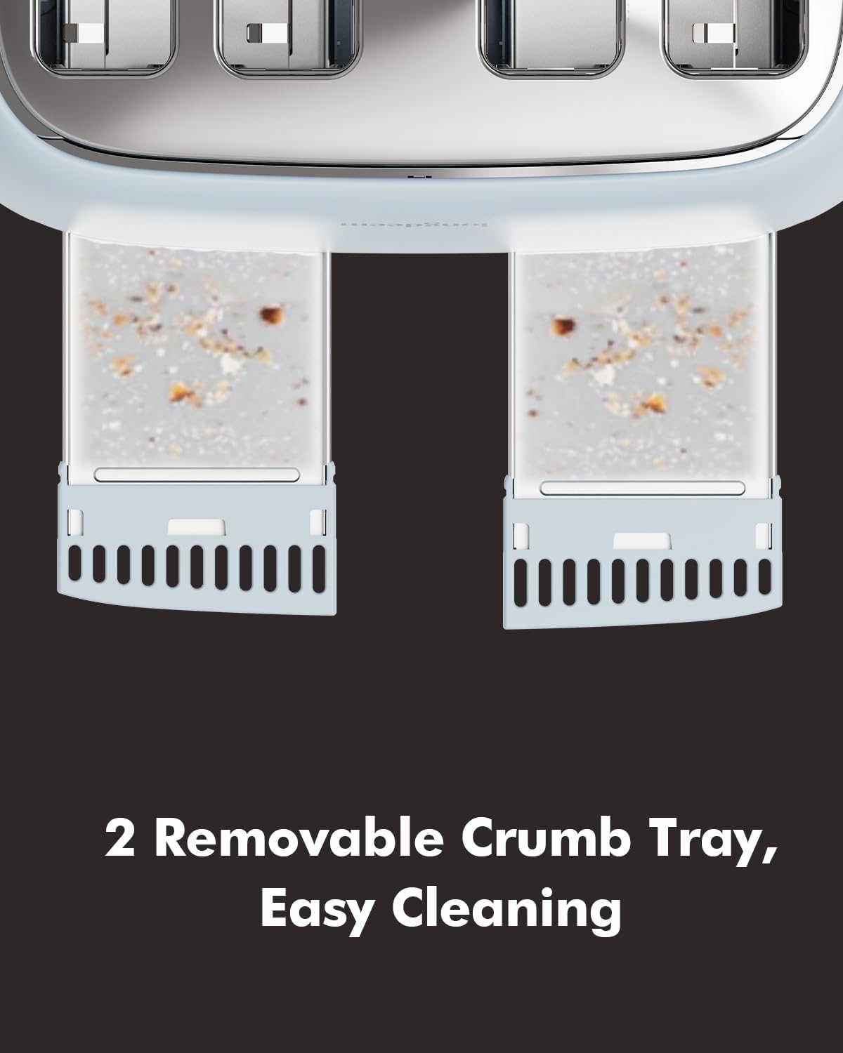 4-Slice Toaster with 1.6" Extra-Wide Slots, 6-Level Browning Control & Bagel/Defrost, Removable Crumb Tray, Auto Shutoff Stainless Steel Toaster Oven, Blue
