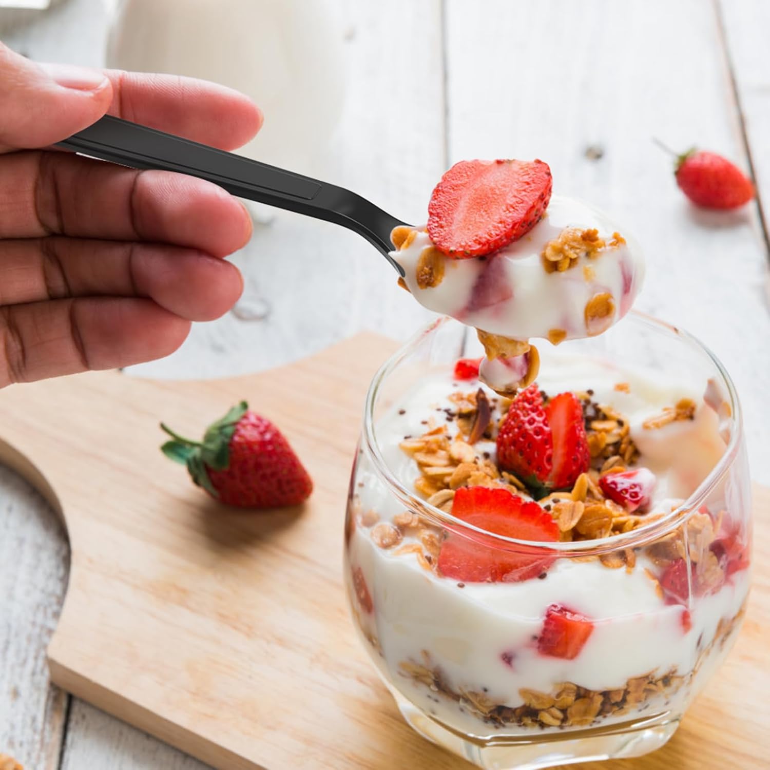- 【Premium Material】: Dealusy black plastic spoons disposable are made of food grade polystyrene, total BPA free and toxin free for your healthy meals.
