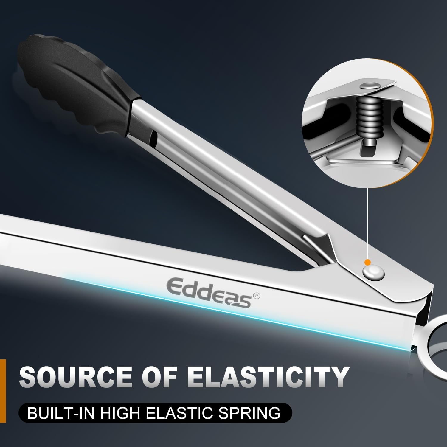 - LOCKING MECHANISM & PULL-RING TECHNOLOGY - Eddeas ring-pull technology will keep your tongs from opening and closing accidentally which will allow you to facilitate better control while using them. And can be conveniently dried and stored. the tongs easily become compact when you pull the easy pull lock up, they fit seamlessly in most drawers and cabinets for easy storage; also include a hook for easy hang
