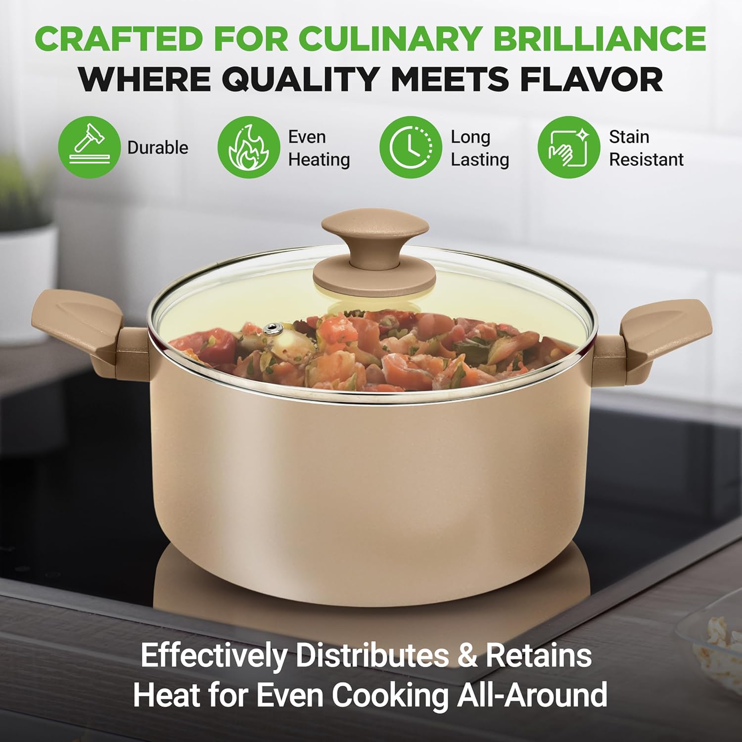 - COMPLETE 75-PIECE KITCHEN SET - This ceramic cookware set includes non-stick pots, pans, bakeware, and tools to handle all your cooking needs. Its durable, stain-resistant ceramic coating ensures long-lasting performance with a stylish finish.