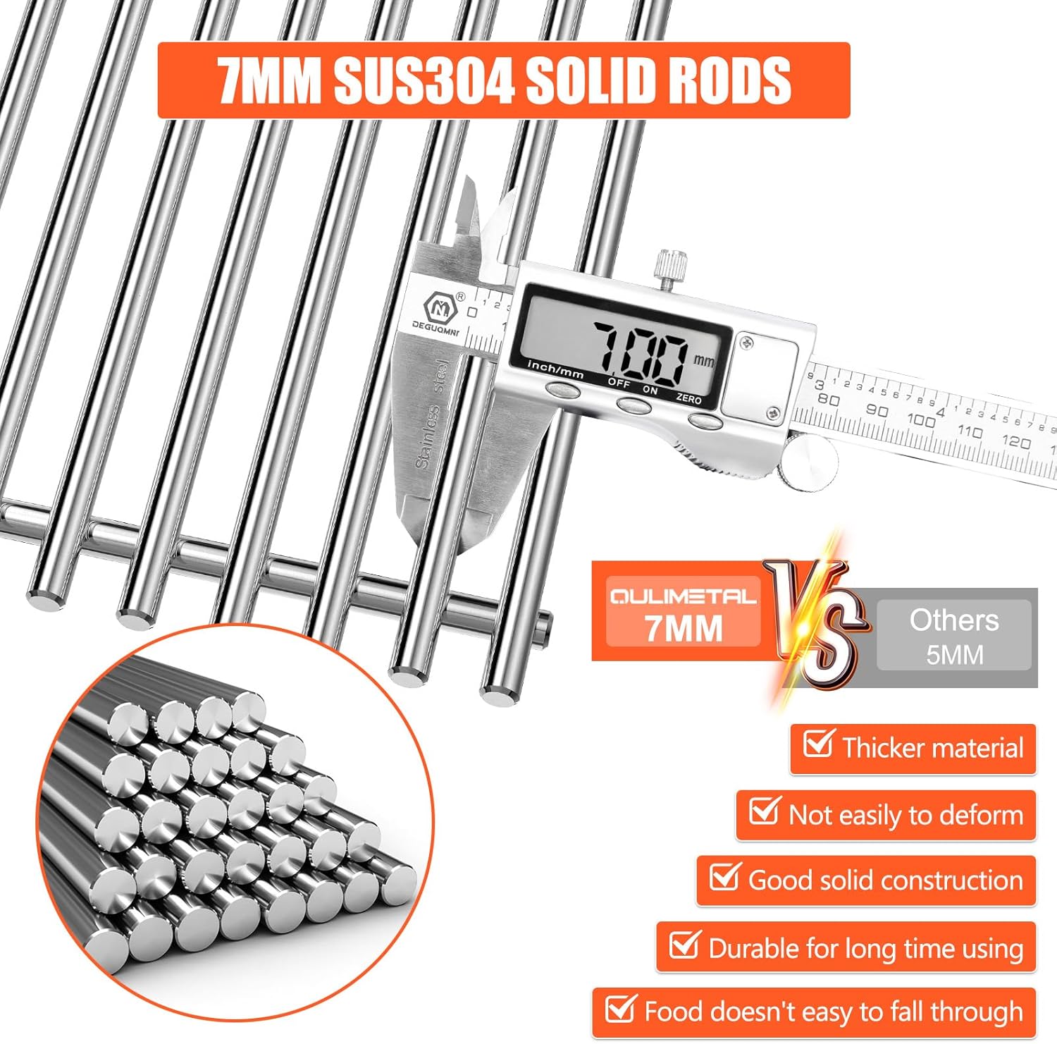 - đ„ăREAL NON MAGNETIC SUS304 STAINLESS ăCrafted from heavy-duty SUS304 food-grade stainless steel, these grill grates for Weber Spirit 200 are built to last. They are non-magnetic, corrosion-resistant, and can withstand intense heat, providing superior durability over time. Compared with enamel-coated accessories, This upgraded strong stainless steel lasts longer and is easier to clean, giving you greater peace of mind while cooking.