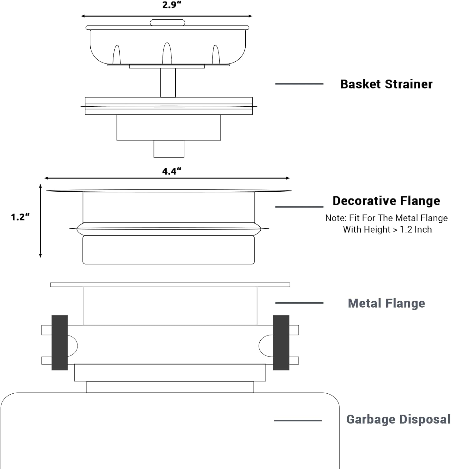 - 【Universal Design Compatibility】Designed to fit most US standard 3.5-inch garbage disposal metal collars, this garbage disposal flange strainer and stopper seamlessly integrates with your existing garbage disposal.