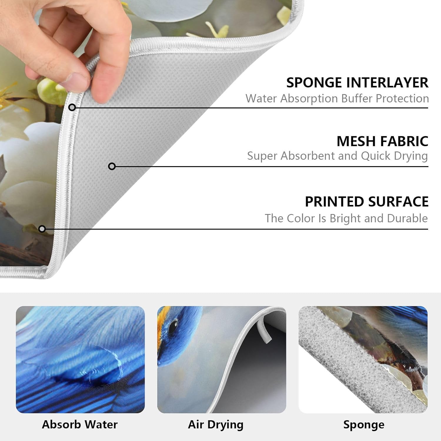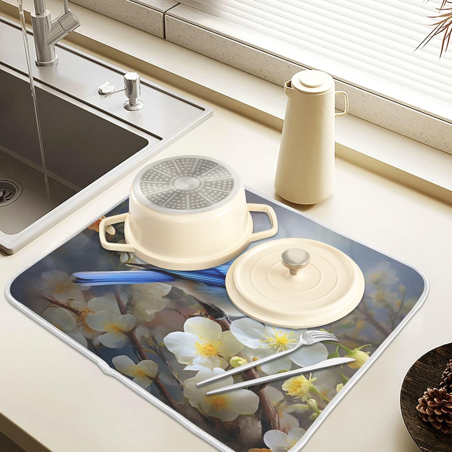 Spring Blue Yellow Flower Bluebird Butterflies Dish Drying Mat for Kitchen Ccounter Absorbent Microfiber Small Drying Pad Dish mats for Kitchen Countertops 16 x 18 Inch