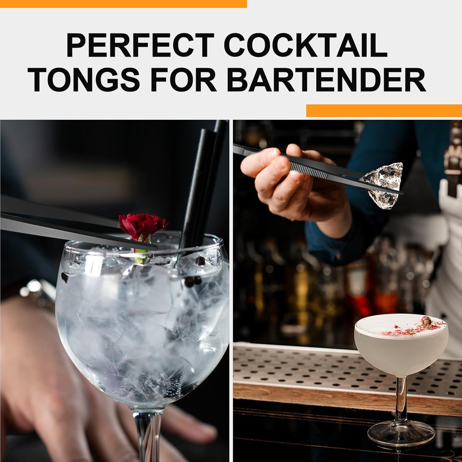 Yaomiao 4 Packs 10 Inch Bar Tweezers Black Long Garnish Tongs Stainless Steel Kitchen Cooking Tongs Tweezers for Food Cocktail Korean BBQ Bartender Chef, Multi-use