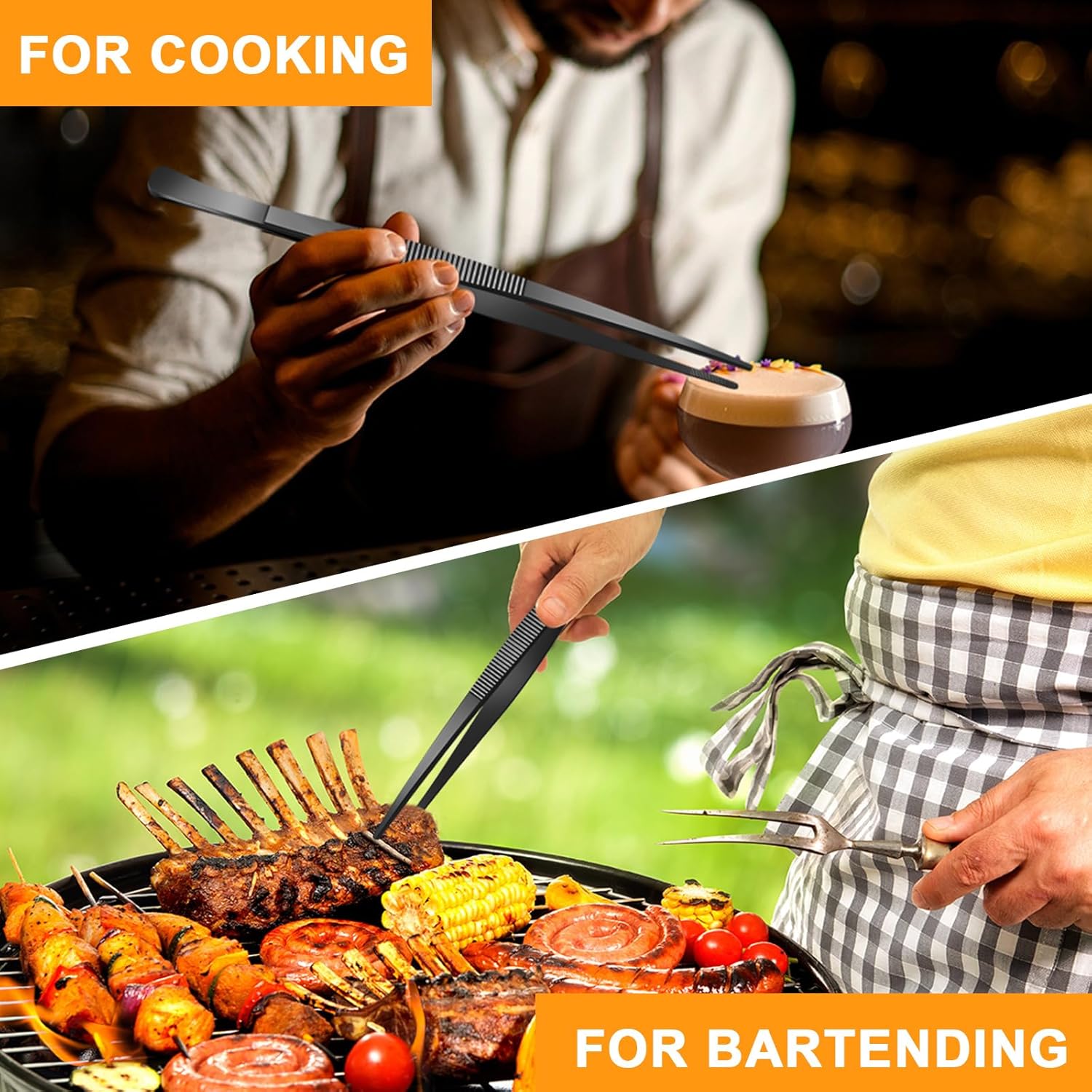 - Multipurpose Tweezers: the black steel tweezer measures about 10 inch/ 25 cm, this stainless steel cookware is great along with other kitchen supplies, also good for culinary, beauty, electrical repairing, purpose and crafting