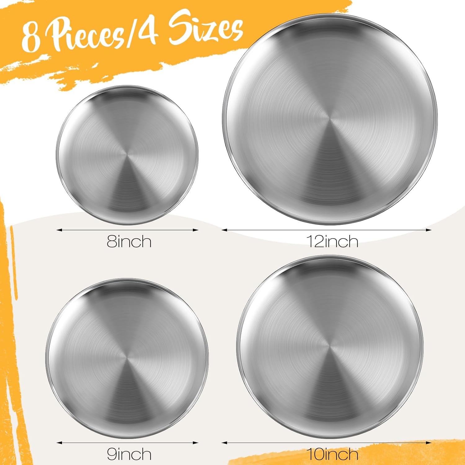 - Package Contents: there are 8 pieces of stainless steel plates in silver color, the sufficient amount can meet your daily use and replacement. not just for oven use, our pizza pans can also be applied for serving your delicious creations. invest in the Stainless Steel Pizza Pans today and experience the ease of baking and serving your favorite pizza creations