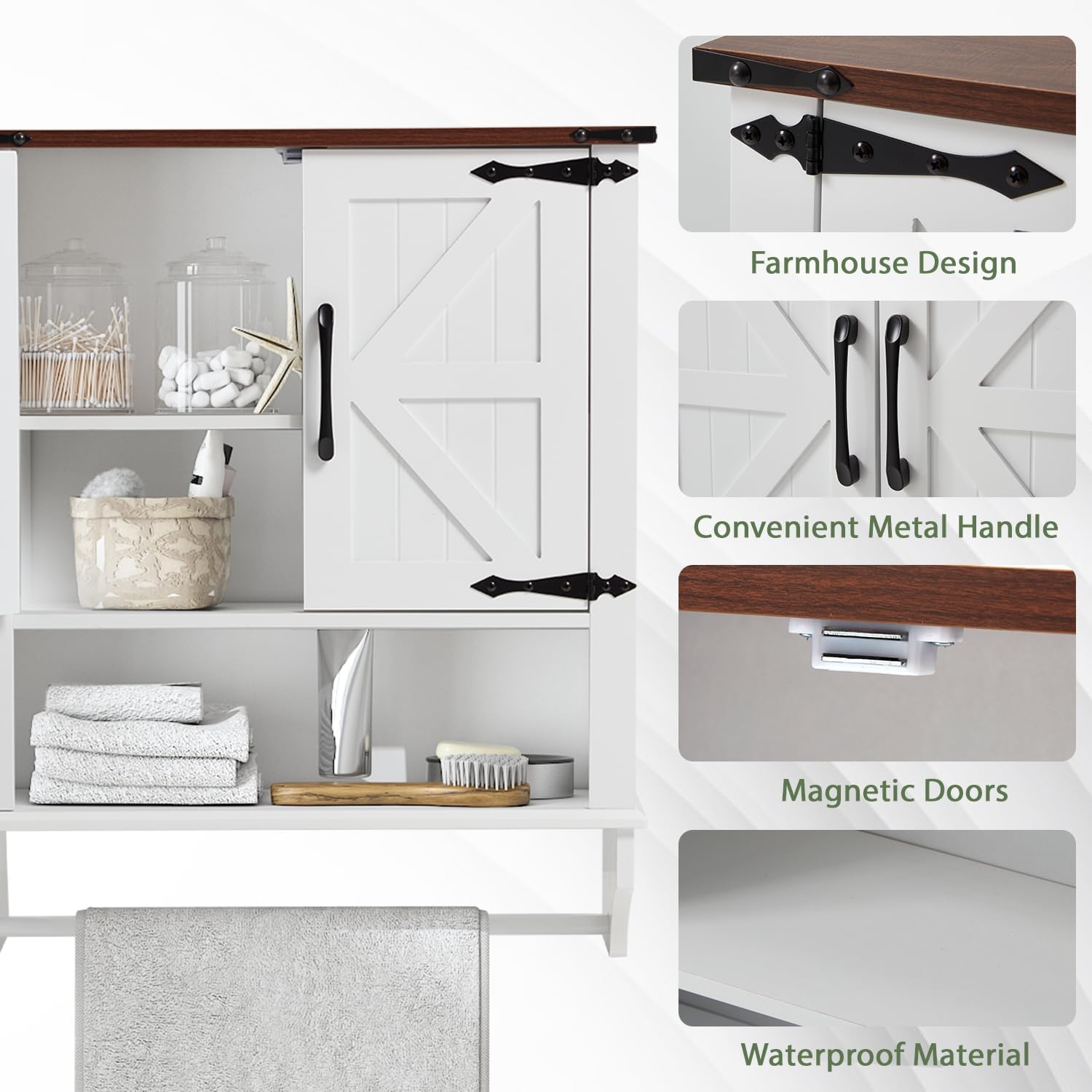 JOMEED Bathroom Wall Cabinet, Farmhouse Medicine Cabinet Storage with Doors and Adjustable Shelf, Over The Toilet Storage, White