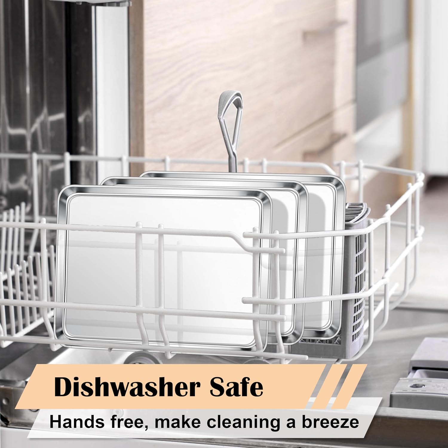 - DURABLE & WARP FREE: One-piece metal structure with a mirror finish enhance hardness, wear resistance and rust protection, Thick rimmed edges prevent warping to ensure durability for long-lasting use, Toaster oven/air fryer/dishwasher/freeze safe
