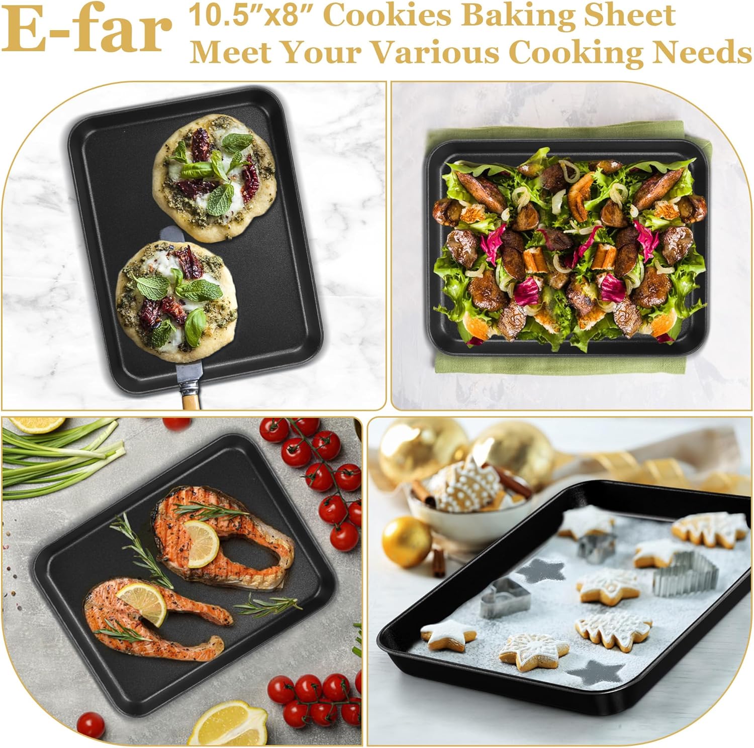 - EVEN AND FAST HEAT DISTRIBUTION: High carbon steel core with flat surface, Stable metal with heavy gauge design helps to transfer heat rapidly and evenly, Maximum ensure the pastry in good flavor without overcook or undercook, Freezer safe and oven safe up to 450°F without warping, Sturdy gauge construction makes them can be repeat used for daily meals, Practical carbon steel bakeware for your kitchen