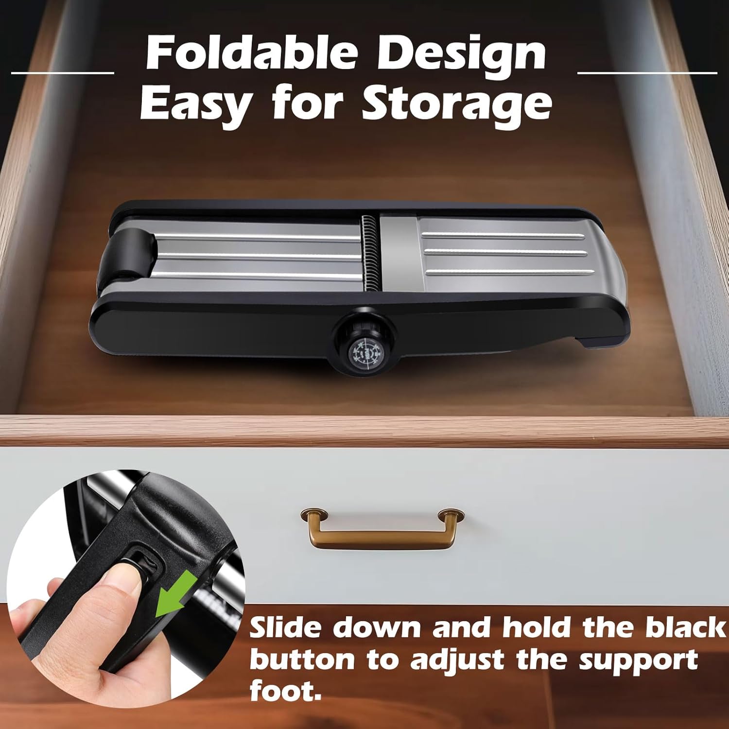 - 【Easy to Store】The mandoline is designed with easy storage in mind. Its compact size and foldable design make it simple to store in your kitchen drawer or cupboard. You won’t need to worry about clutter or finding space for this mandoline vegetable slicer, making it a practical addition to your kitchenware collection. It’s ideal for small kitchens or those looking to maximize storage efficiency.
