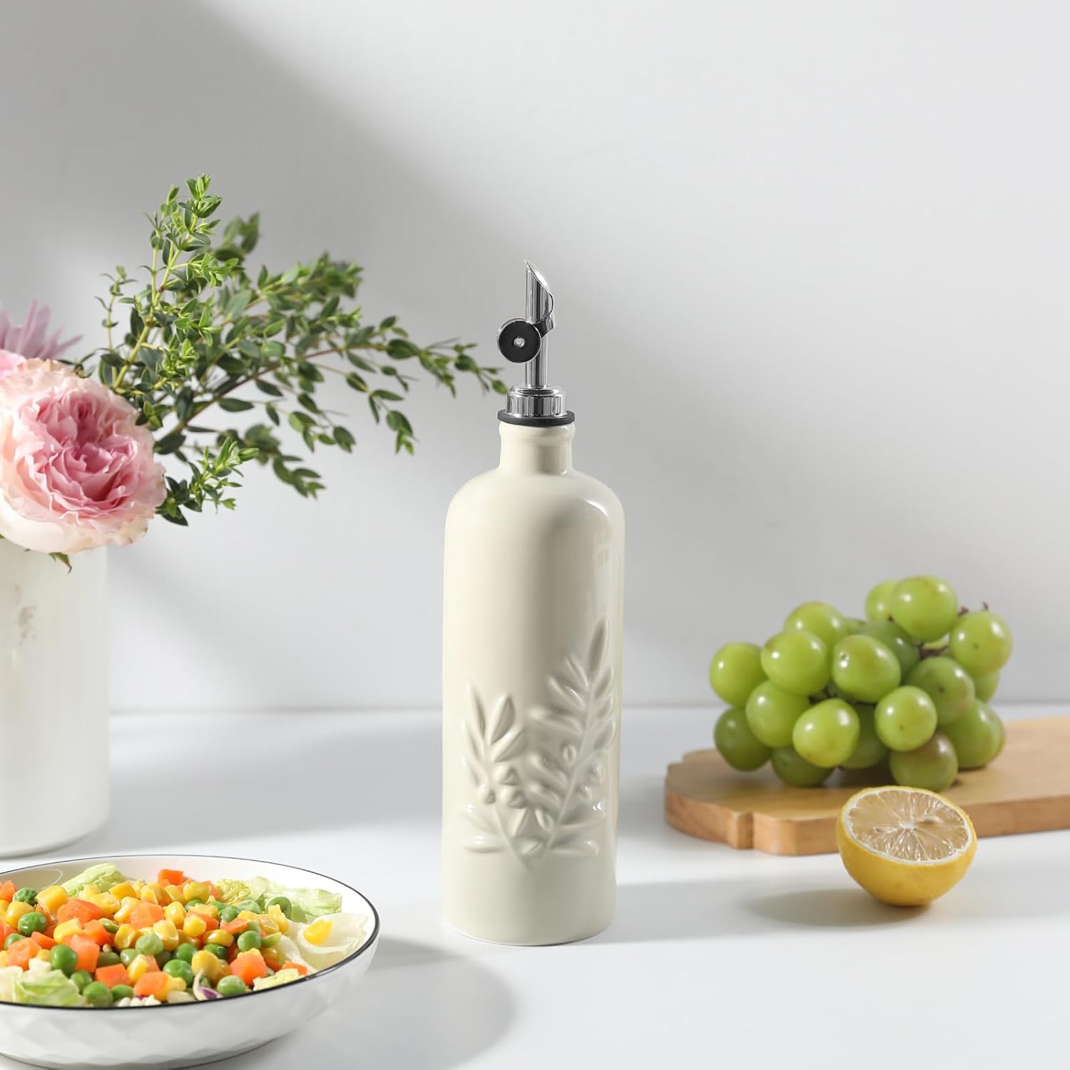 - Versatile for Kitchen & Practical- Ideal for storing and dispensing olive oil, vinegar, syrups, and more. Its 18 oz (530 ml) size is perfect for home kitchens, restaurants, cafes, or as a stylish gift. Durable, high-temperature-fired ceramic ensures lasting use.