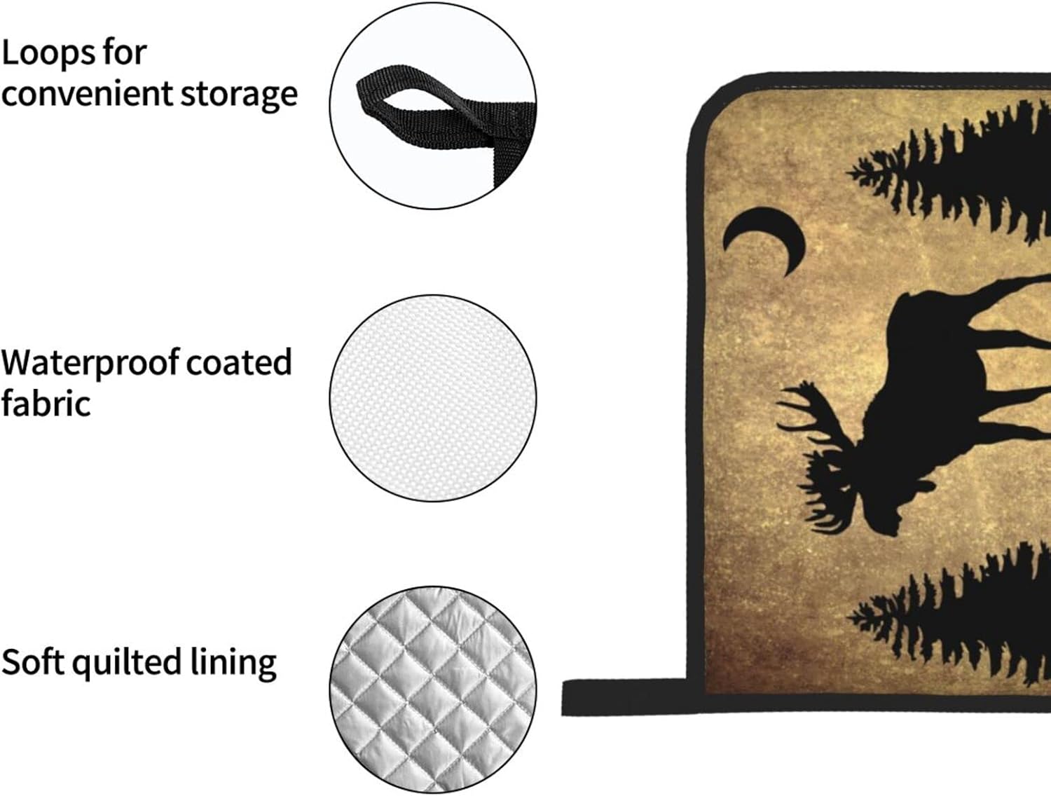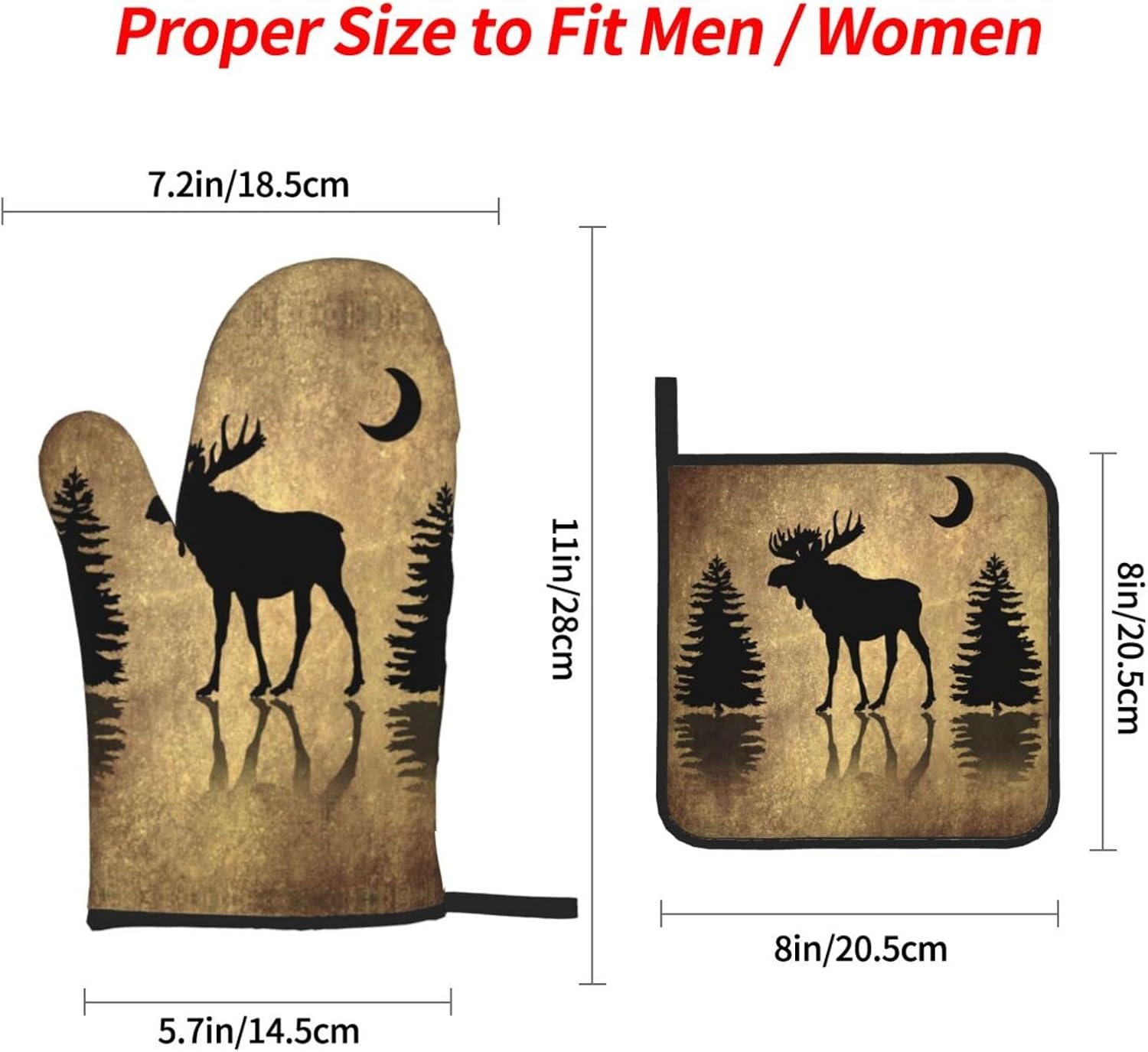 - CARE TIPS: No machine washable, it is recommended to hand wash with room temperature water and dry naturally. The rustic elk moose deer forest pine tree moon oven mitts and pot holders set are easy to maintain which makes busy life more convenient.