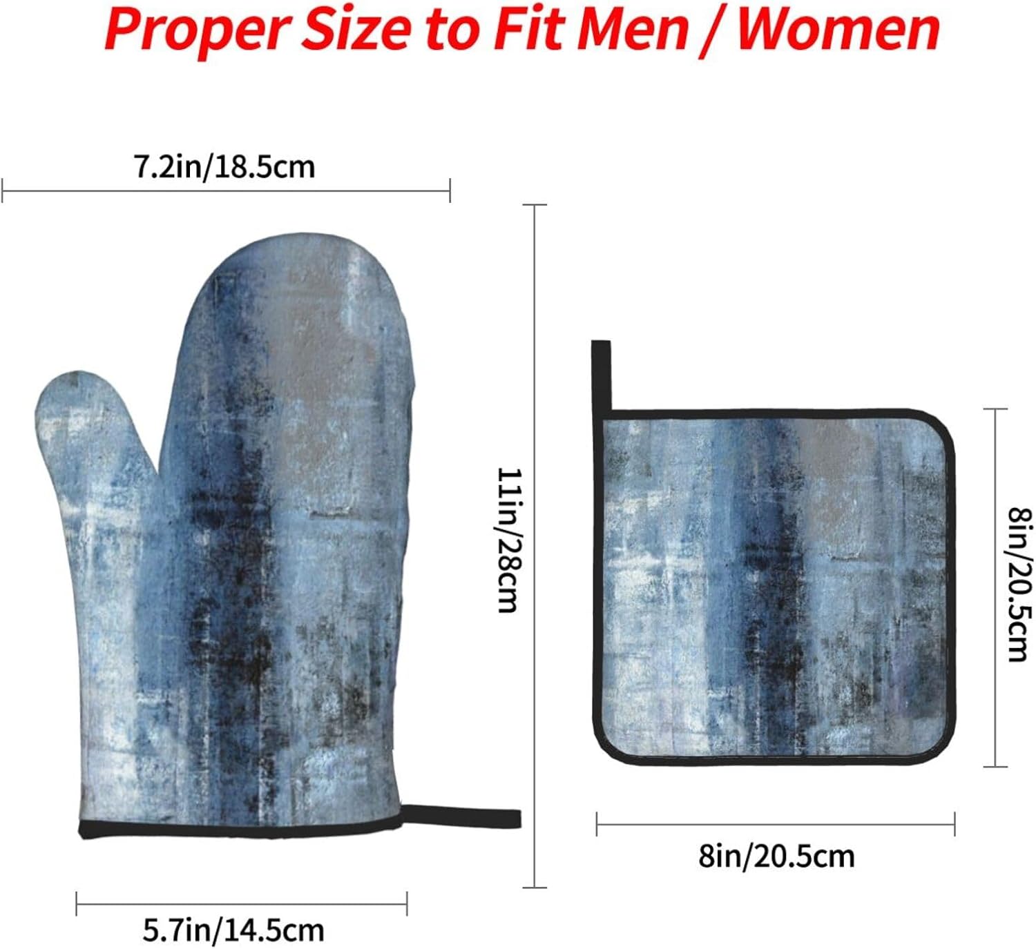 - HEAT RESISTANT: Thicker blue and grey abstract art oven mitts and potholders, heat resistant up to 392 F/ 200c. Well protect your hands and wrists from burns or steam scalds, make your cooking time easy and safe.