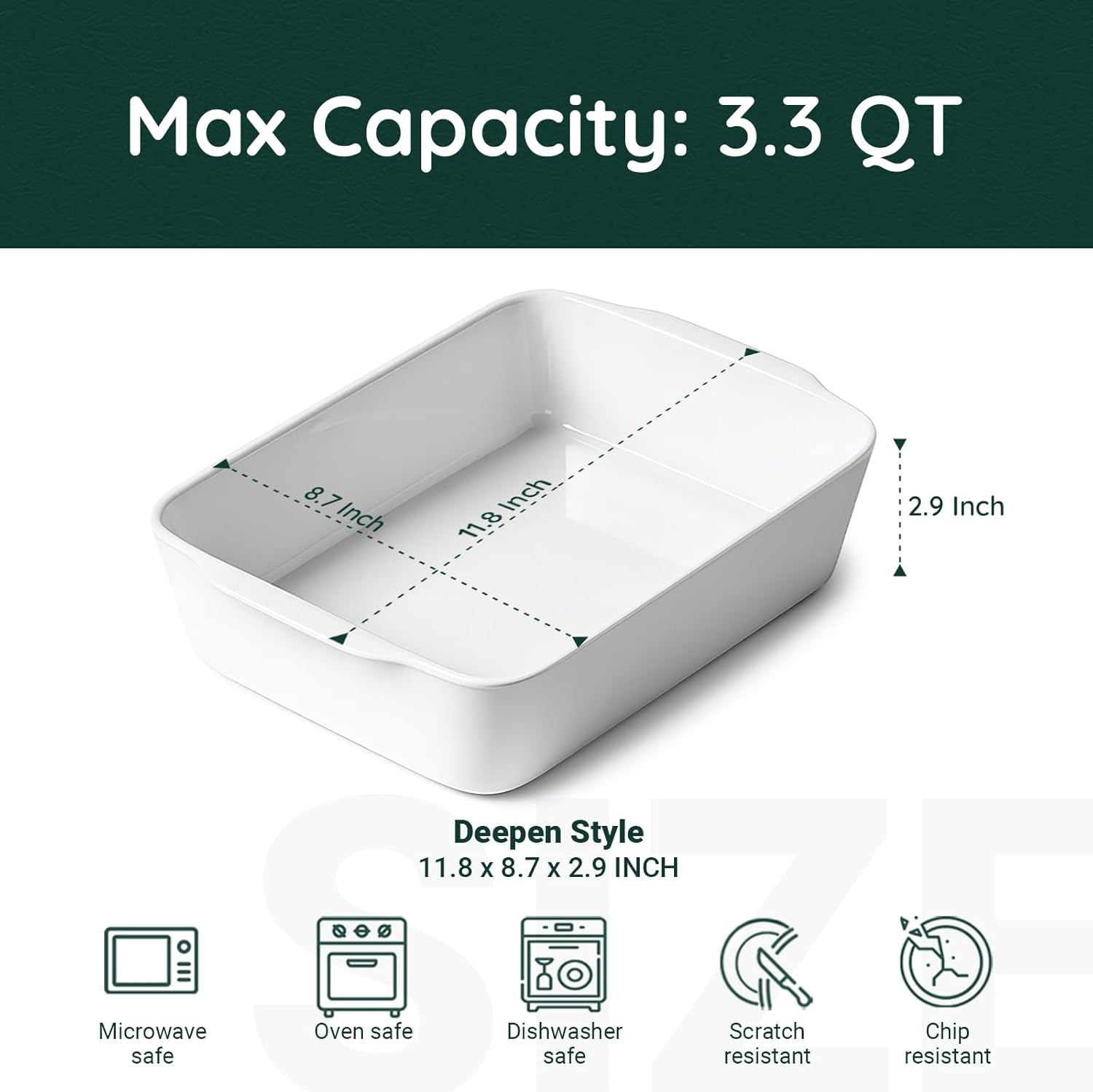 - Deep & Roomy Design: Each size offers generous depth to hold layered lasagna, hearty casseroles, or roasted meats without spillovers.