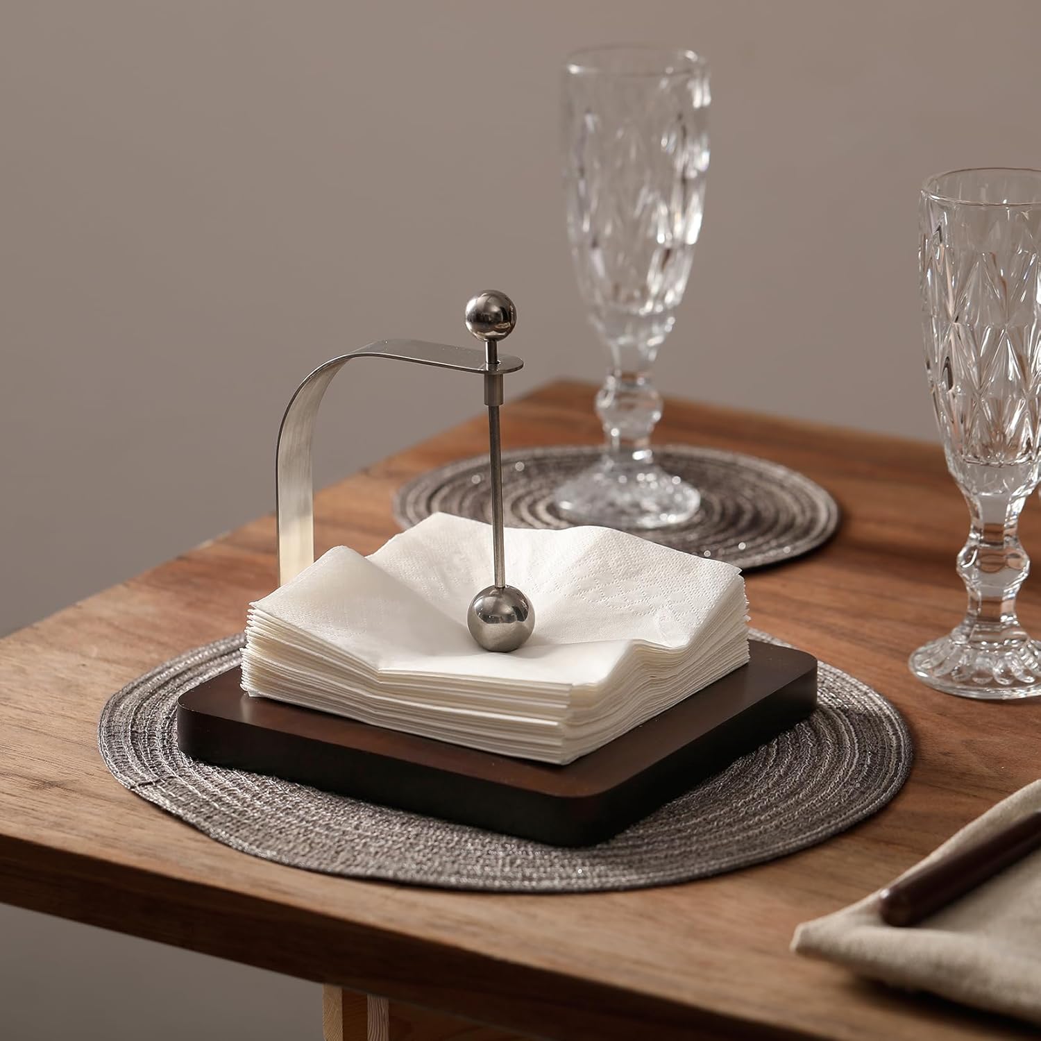 Napkin Holder, Wood Square for Table Dispenser with Weighted Arm, Perfect for Kitchen, Office, Restaurant,Home Décor, Cafe, Warming Gift