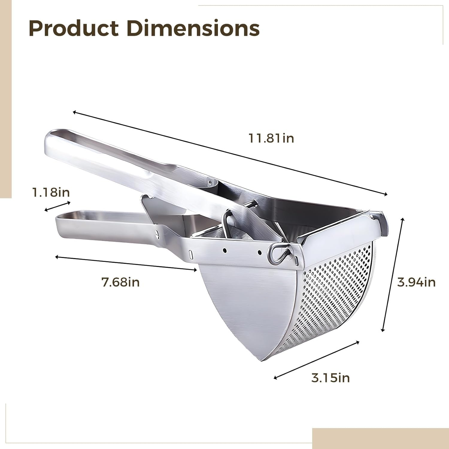 Stainless Steel Potato Ricer, Large Potato Masher, Rust-Resistant Kitchen Tool with Ergonomic and Non-Slip Handle, Versatile Food Masher for Various Ingredients