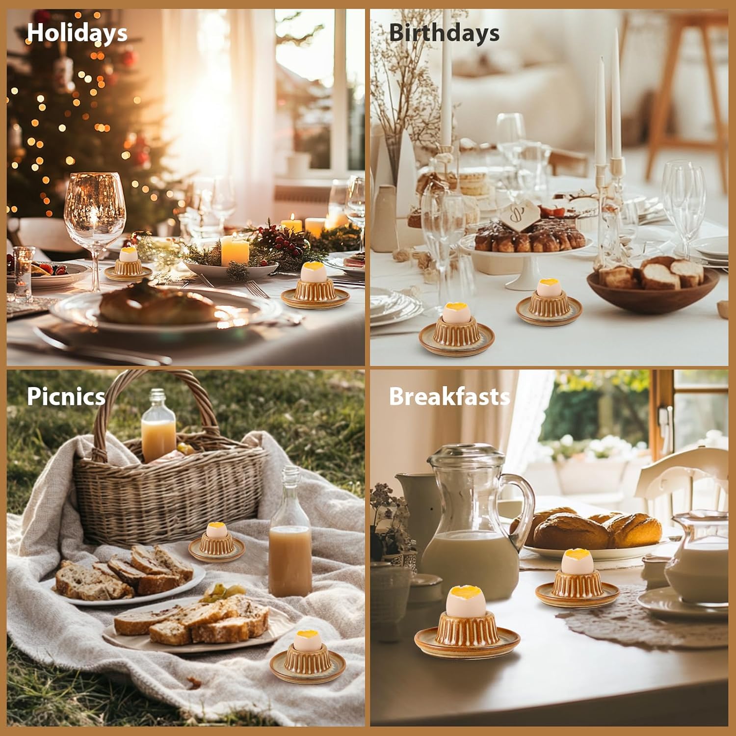 - Elegant Egg Cups Set of 2: Enhance your breakfast with these ceramic egg cups in brown. Designed for boiled eggs, they add elegance to your table. Use as Easter egg cup, decorative egg holder, or soft boiled egg holder for daily meals