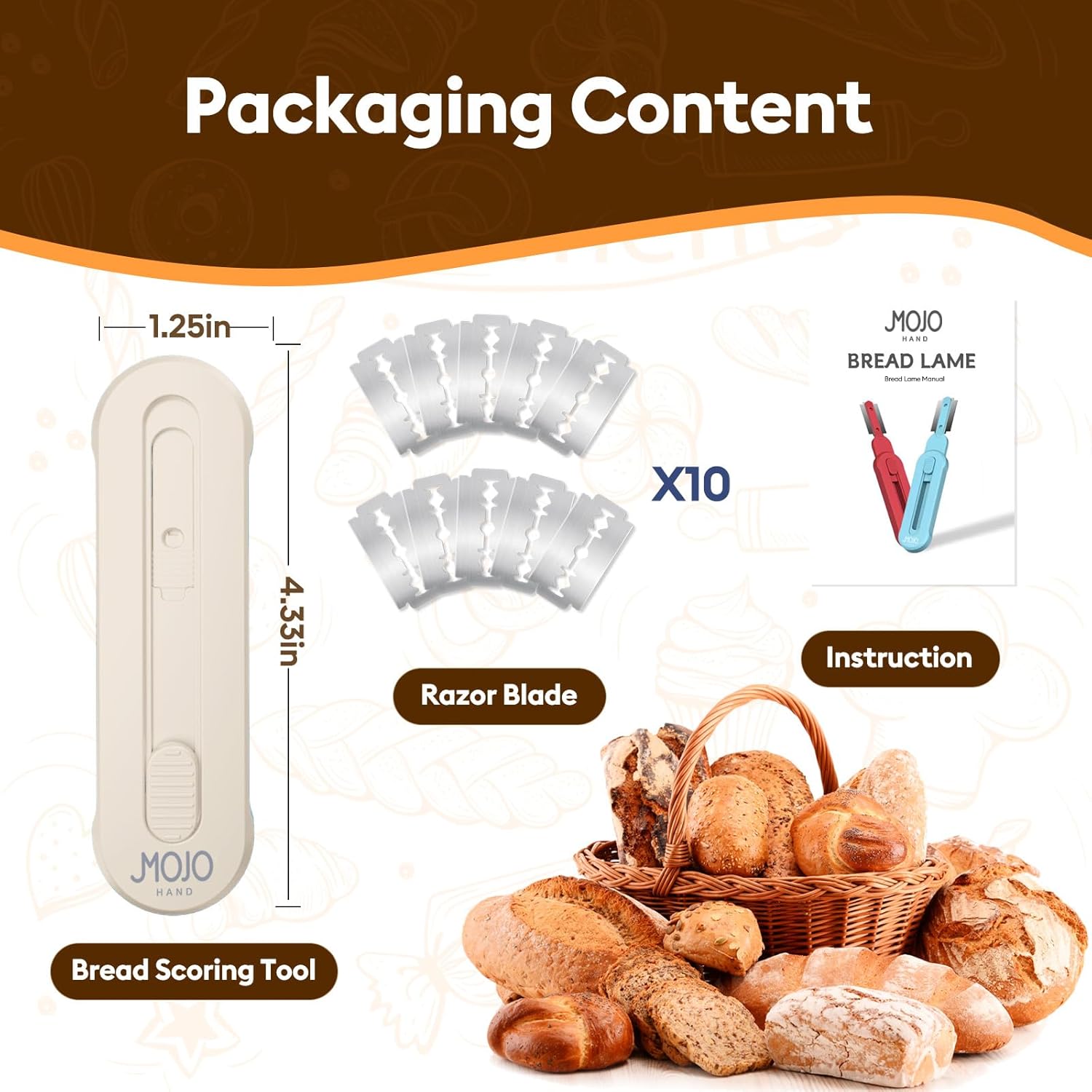 MOJOHAND Bread lame for Dough, Magnetic & Reusable Bread Lame Dough Scoring Tool, Anti-Slip Handle with Long Retractable Razor blades, Sourdough Scoring tool for Bread Making(Off-white)