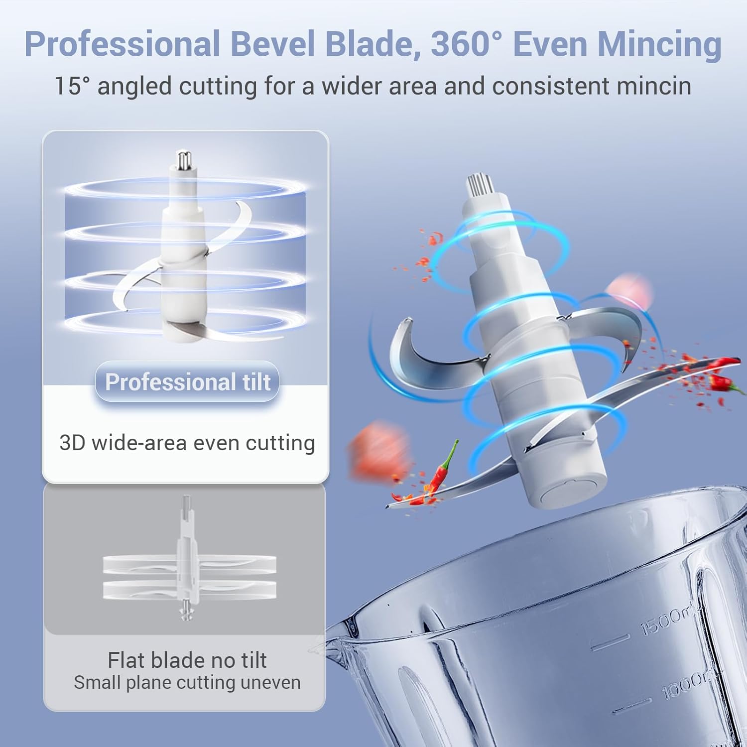 - Special Feature : Adjustable Speed Control, Fast chopping, Easy to use & clean, Handheld 8 Cup Glass Bowl, No hole stainless steel blade, Powerful Motor Adjustable Speed Control, Fast chopping, Easy to use & clean, Handheld 8 Cup Glass Bowl, No hole stainless steel blade, Powerful Motor