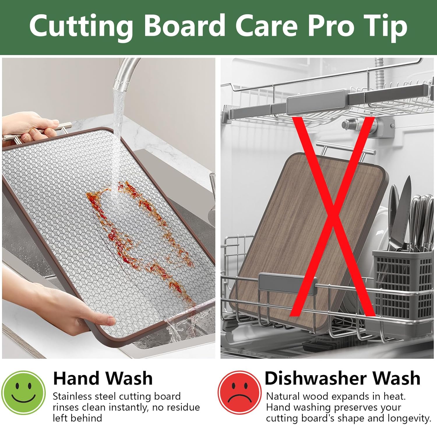 Stainless Steel Cutting Board Wood Double Sided Chopping Cutting Boards for Kitchen - 2 in 1 Ebony Metal with Handle Scratch Resistant Raw Meat Vegetable Fruit Cooking Gift 16.3''×10.4''×1''(Upgraded)