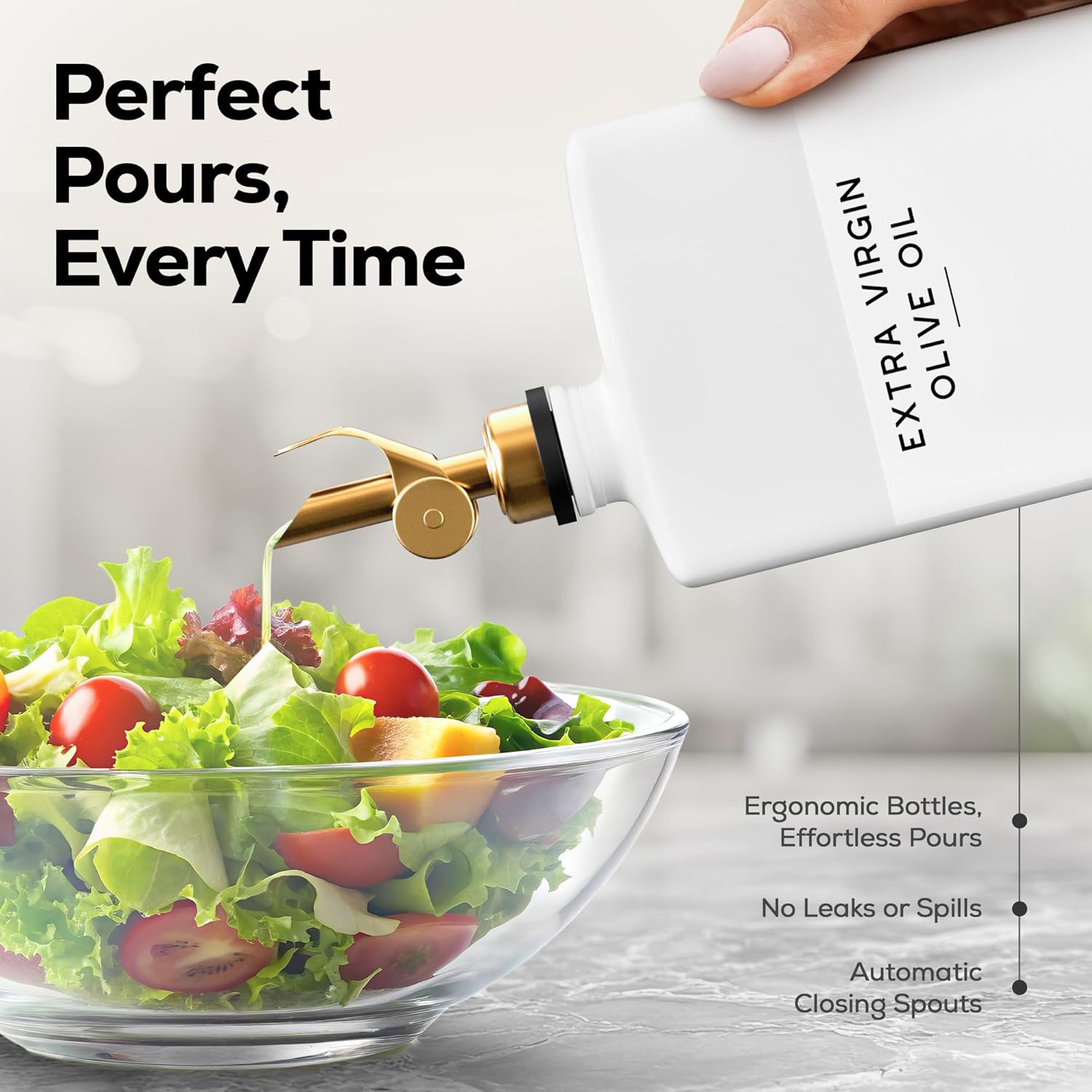 - PERFECT POURS EVERY TIME – Crafted with high-grade 304 stainless steel and automatic closing spouts, our olive oil dispenser set, which also works perfectly for coffee syrups, avocado oil, soy sauce, canola oil, and vanilla syrup, ensures a drip-free, leak-proof experience. Rest easy that you will enjoy a smooth precise pours every time.
