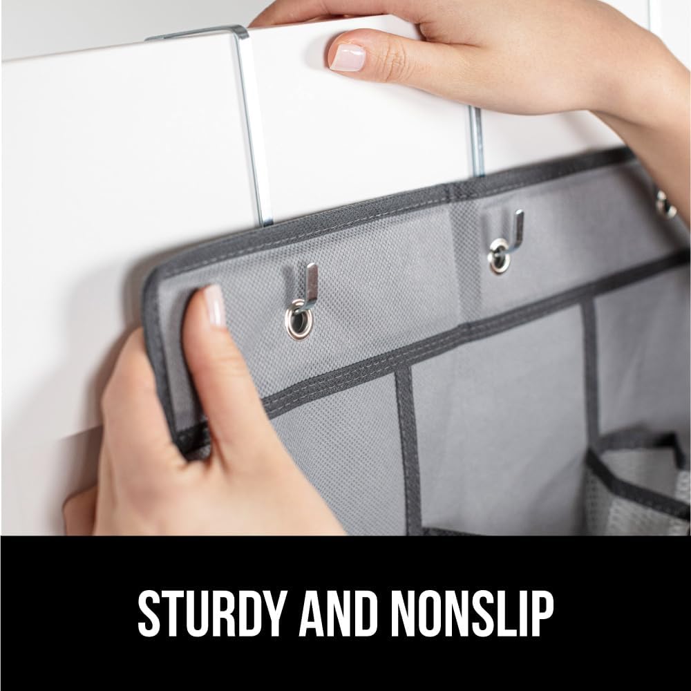- SLIP RESISTANT DESIGN: organizer features four strong and sturdy hooks that firmly grip the top of doors and are designed to fit seamlessly over most doors