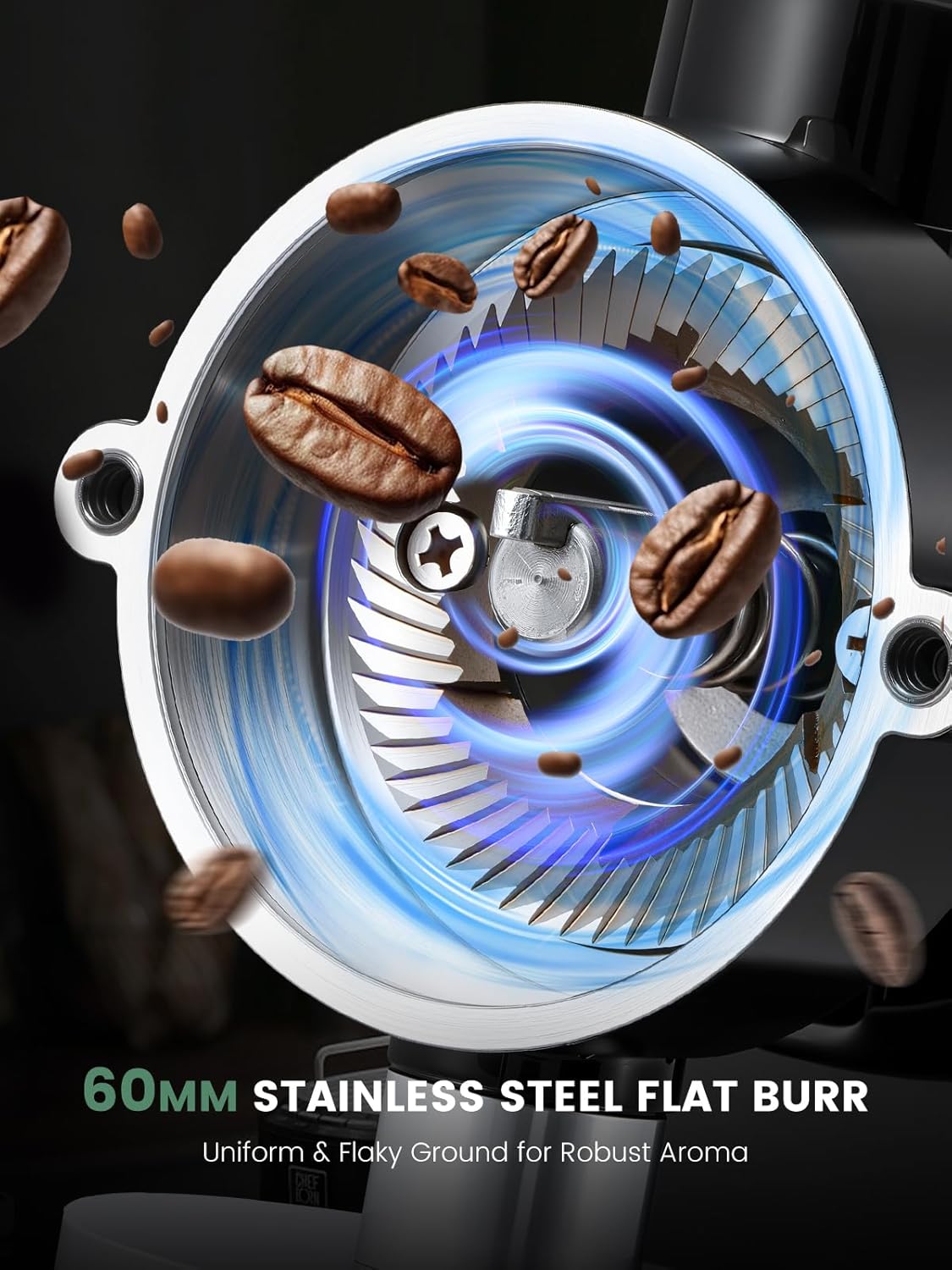 - [Efficient Grinding] Our Huanyu flat burr coffee grinder is equipped with a 60mm flat burr made from stainless steel, ensuring uniform ground in flake form. This enhances coffee concentration and extraction quickly, leading to a robust aroma that satisfies your coffee cravings