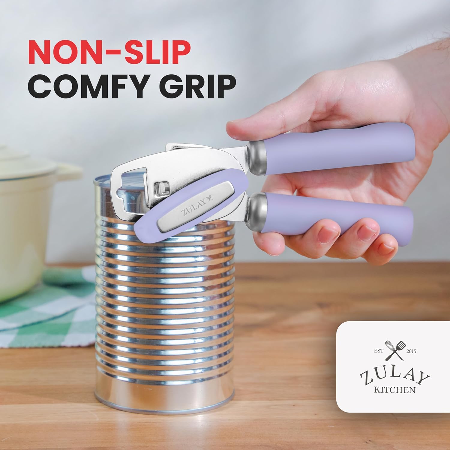 Zulay Kitchen Heavy Duty Stainless Steel Can Opener Manual with Bottle Opener - Rust Proof Manual Can Opener With Turn Knob & Comfy Soft Grip Handles - Periwinkle