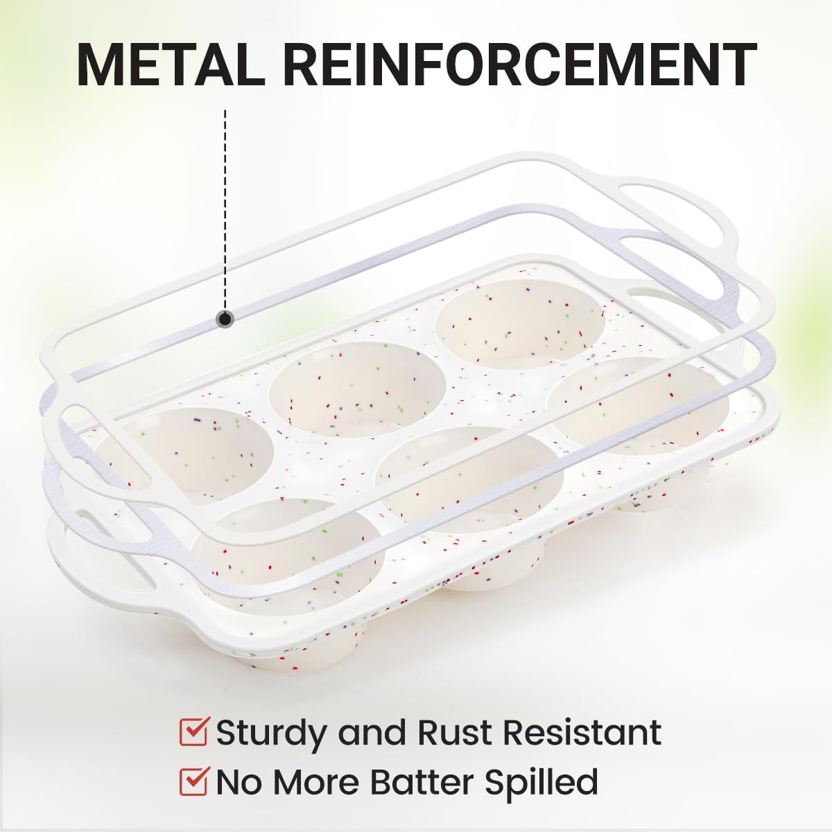 Silicone Muffin Pans for Baking, Metal Reinforced Frame Jumbo 6 Cups & Mini 24 Cups Cupcake Pan Nonstick Muffin Pan for Homemade Baking Easy to Handle