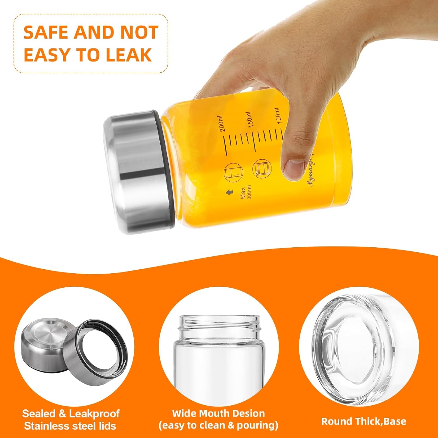 - 3. Sustainability in Style: Say goodbye to disposable plastic containers and hello to eco-friendly elegance. Our reusable glass bottles not only reduce waste but also add a touch of sophistication to your kitchen. they're a practical and sustainable choice for everyday use. (Do not put the lid in the dishwasher)