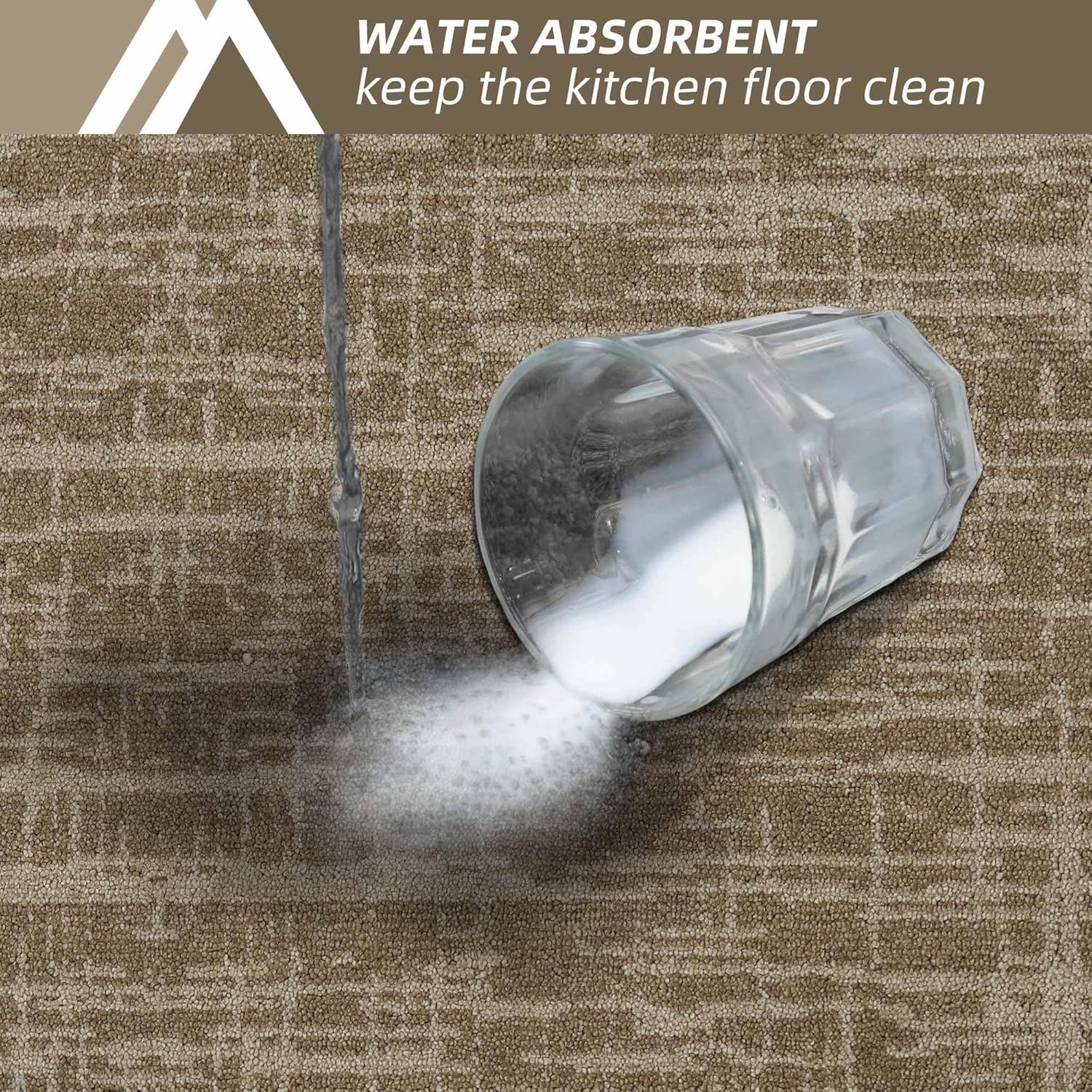 - Comfort,Stain Resistance and Absorbent:Soft kitchen floor mat is crafted from wear-resisting Polyetser fibers with three layers technology,providing a comfortable feeling.The tight sewing and dense yarns ensure exceptional durability,superb absorbency,stain resistance and colorfastness.Protect your floor from oil,moisture,sauces or food particles