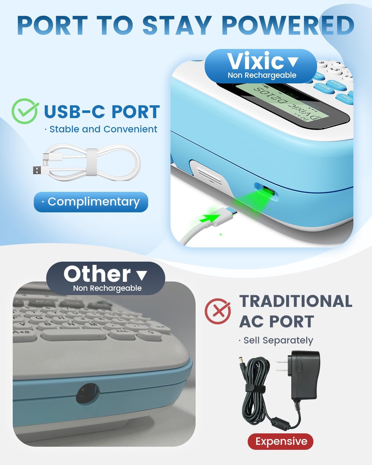 - USE D210S LABEL MAKER MACHINE AT YOUR DESK OR ON THE GO: Modern USB-C port works instantly with included cable — no more forced $10 adapter purchases with old AC-only label makers. In addition, for true portability with your portable label maker, you can opt for the optional 6 AAA batteries (not included) to stay powered anywhere