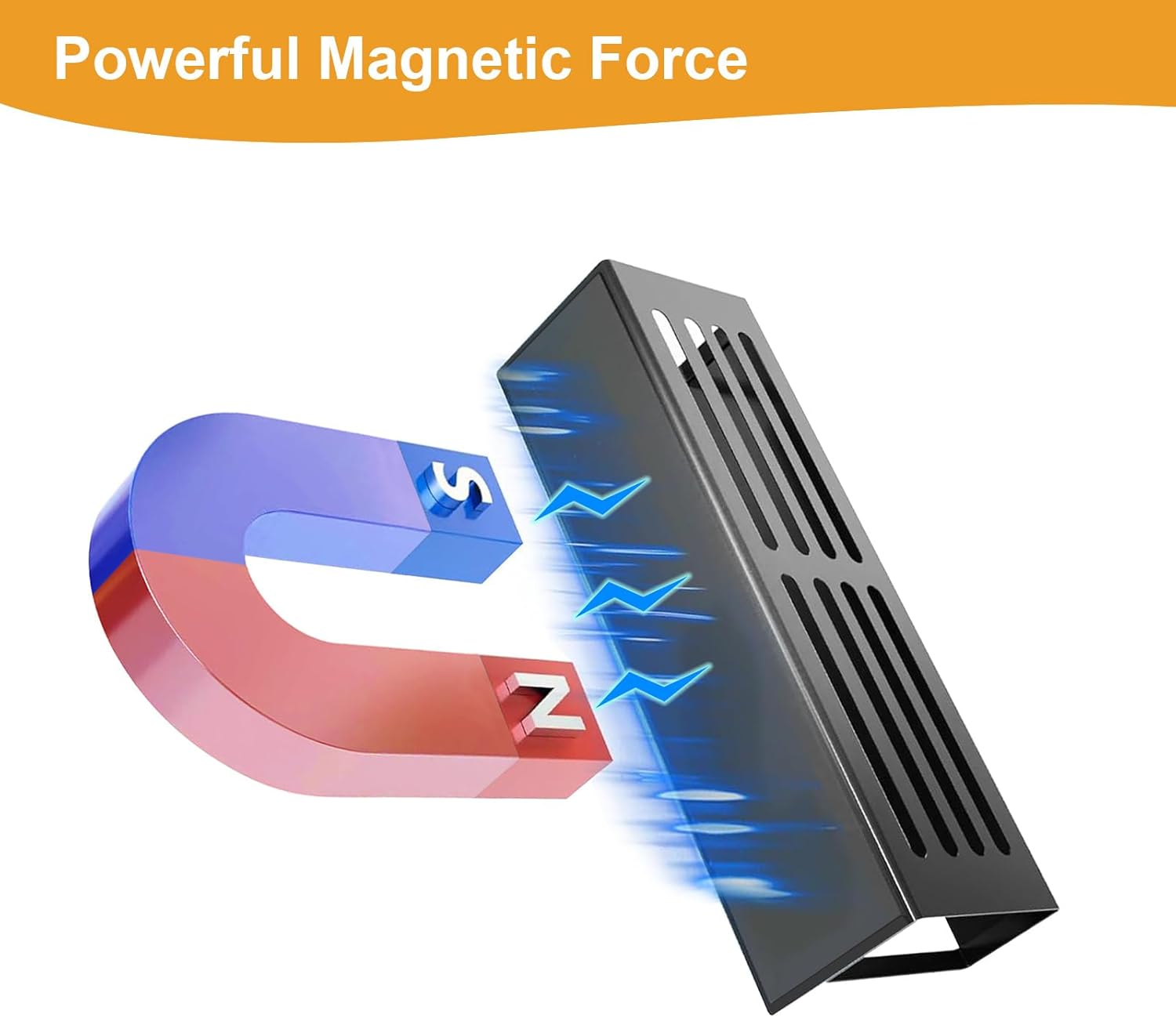 - STRONG MAGNETIC DESIGN:Magnetic spice rack for refrigerator has a very good magnetism, it can support heavy objects up to 8 pounds, the extra wide magnetic strip of about 6.5 cm can be firmly attached to any iron surface, just fix the spice rack to the side of the refrigerator, you can store small kitchen items in place without sliding or falling.