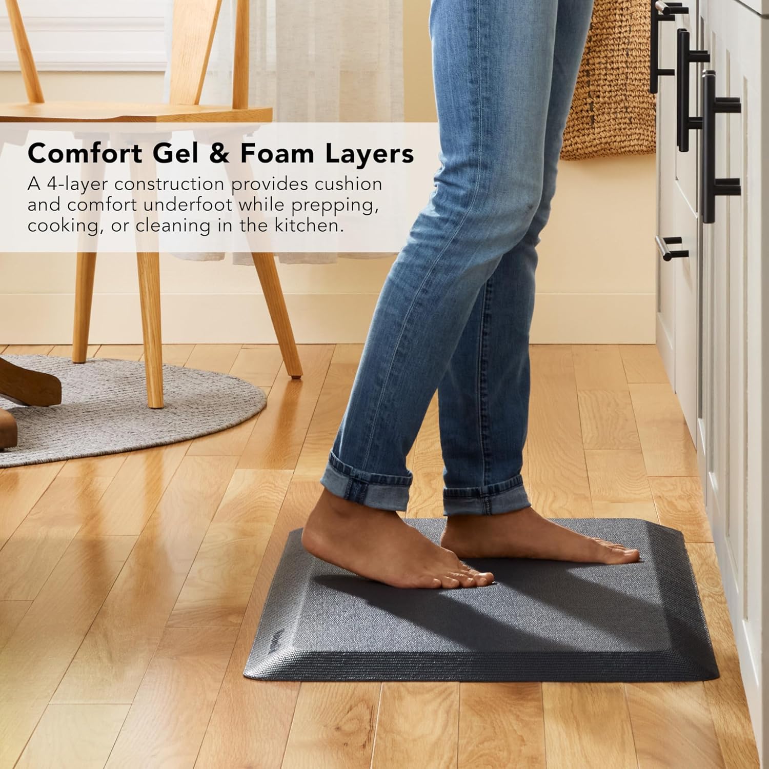 - COMFORT MAT: a 4-layer construction provides ultimate comfort underfoot while prepping, cooking, or cleaning in the kitchen
