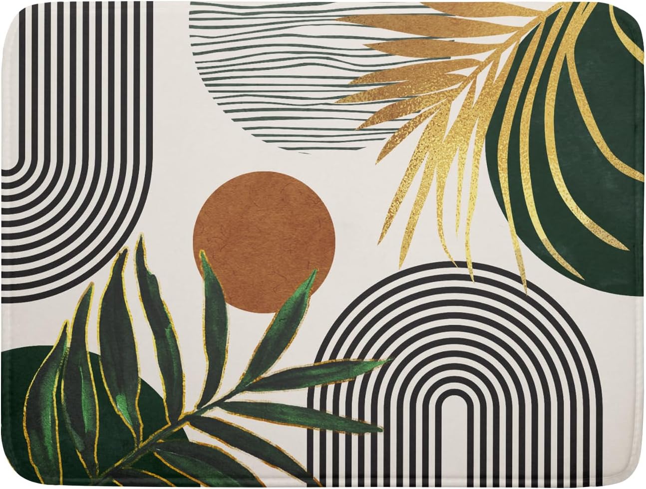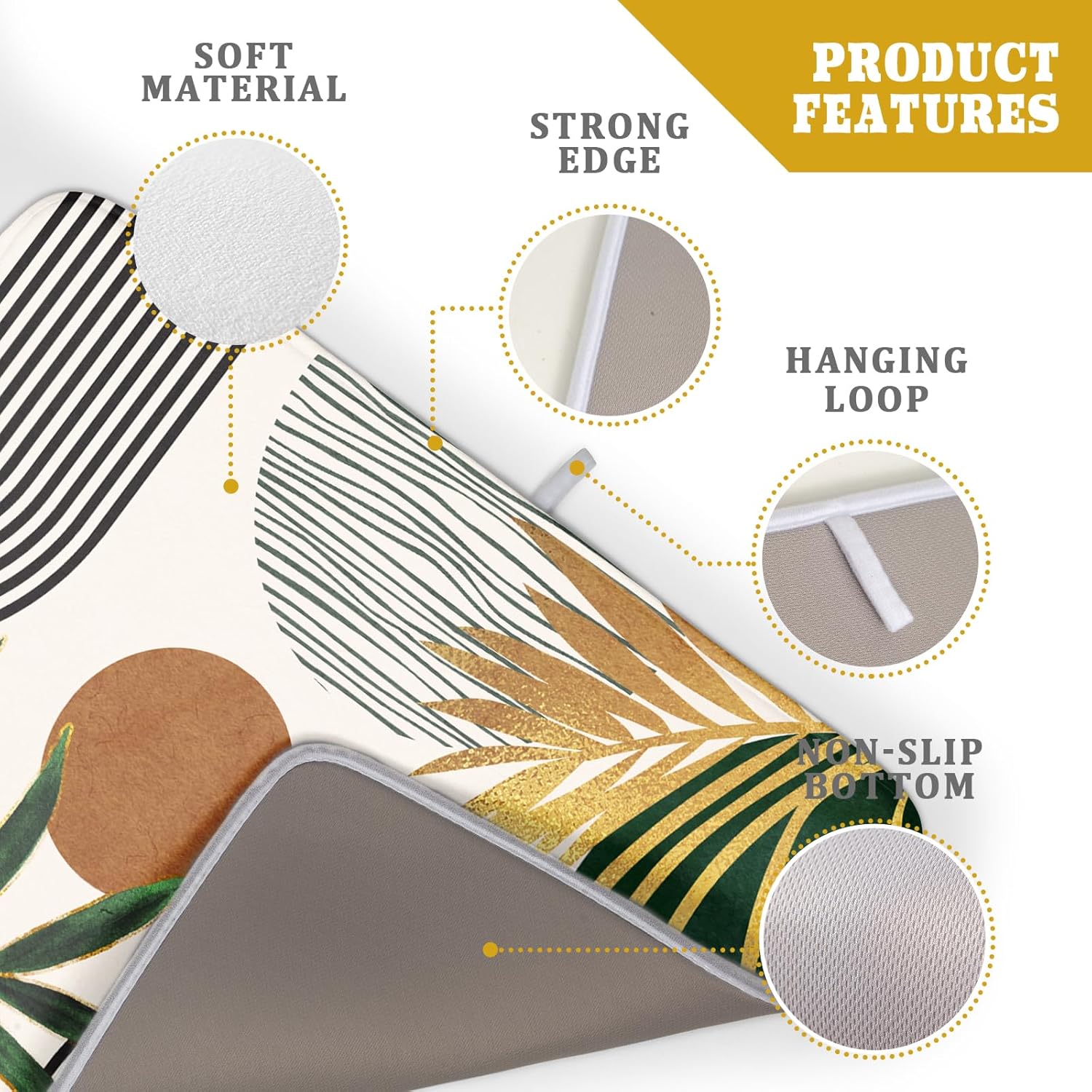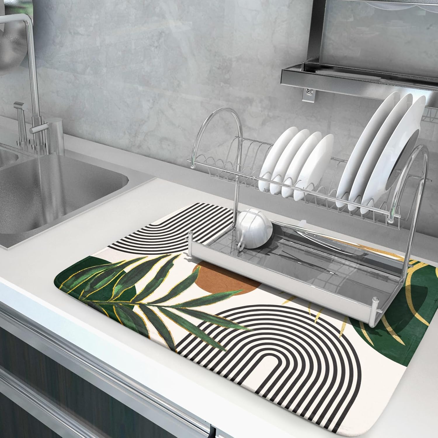 Boho Leaves Dish Drying Mat 18x24 inch Mid Century Absorbent Drainer Rack Mats Fast Dry Bottles Dish Dry Pad Protector Kitchen Accessories