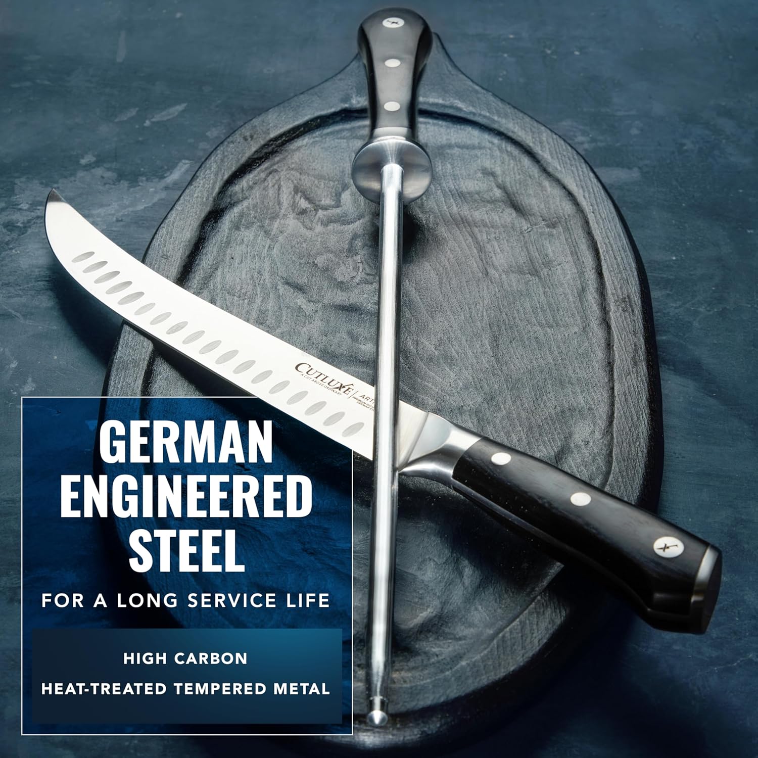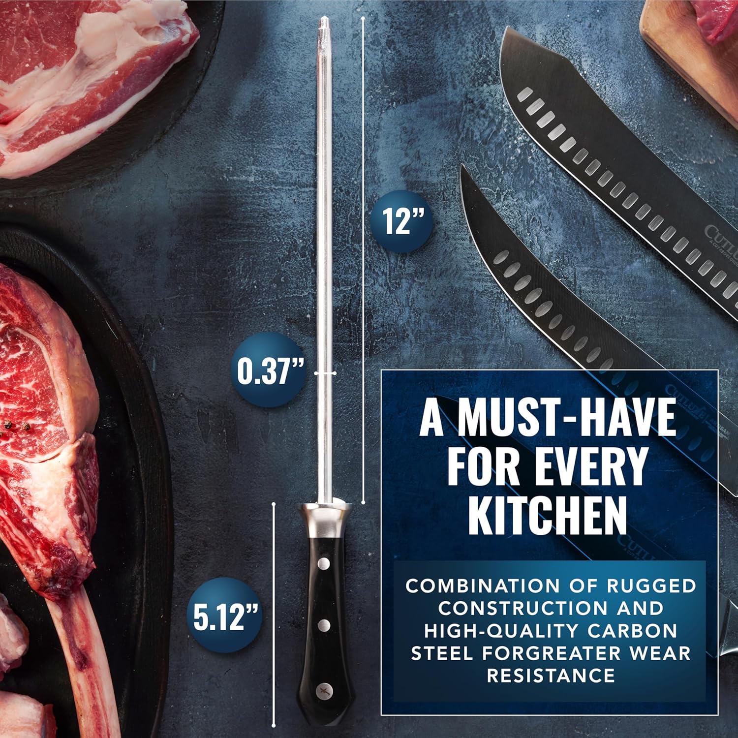 Cutluxe Honing Rod, Sharpening Steel for Kitchen Knives – 12" Honing Steel – Ergonomic Handle Design – Artisan Series