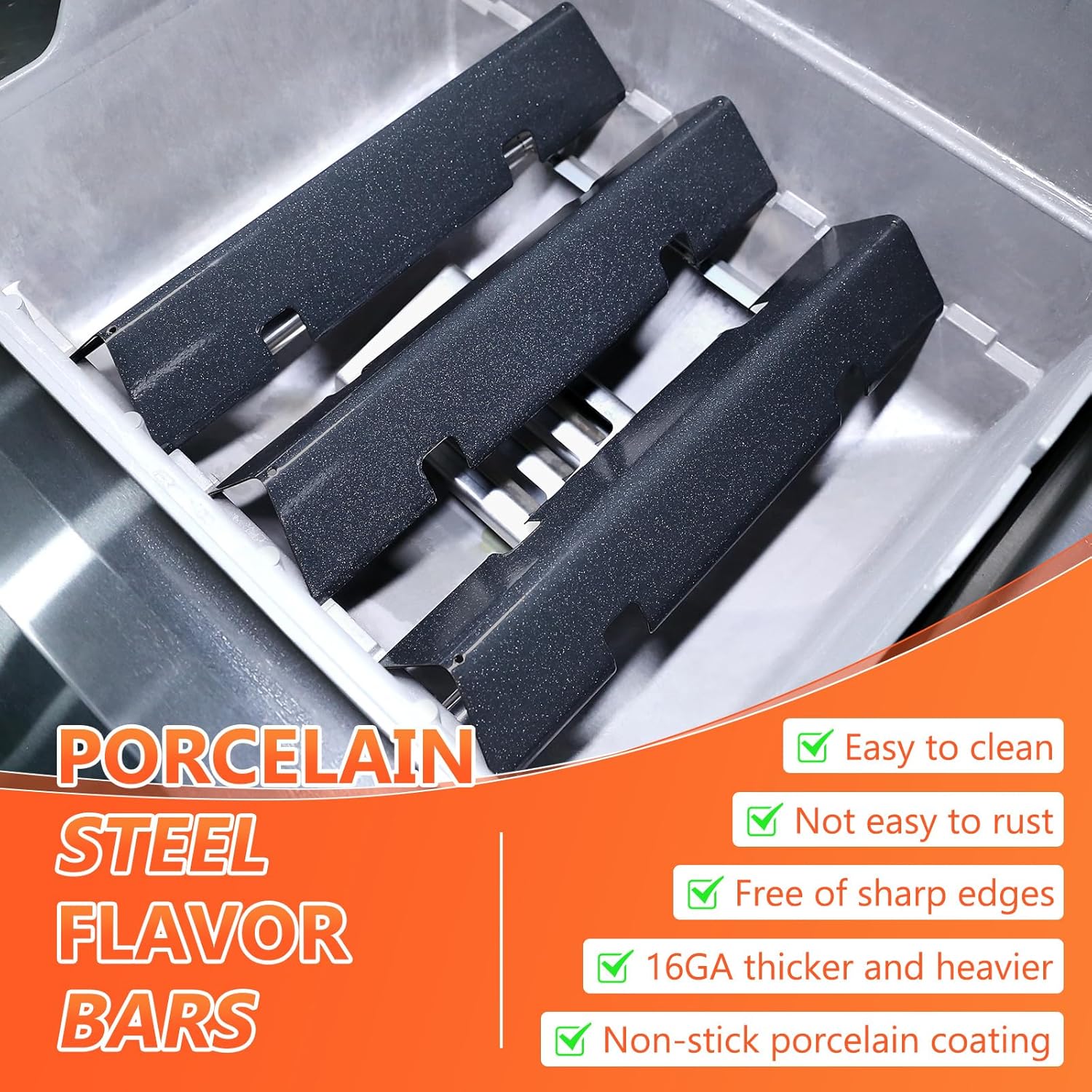 - đ„ăHEAT EVENLYăFor weber spirit grill parts prevent food directly exposure to flame, have a good protection for your burner and make your food more evenly heated, which can avoid local overheating. Porcelain Steel flavorizer bars create delicious barbecue flavor, achieve the perfect balance of temperature and flavour!