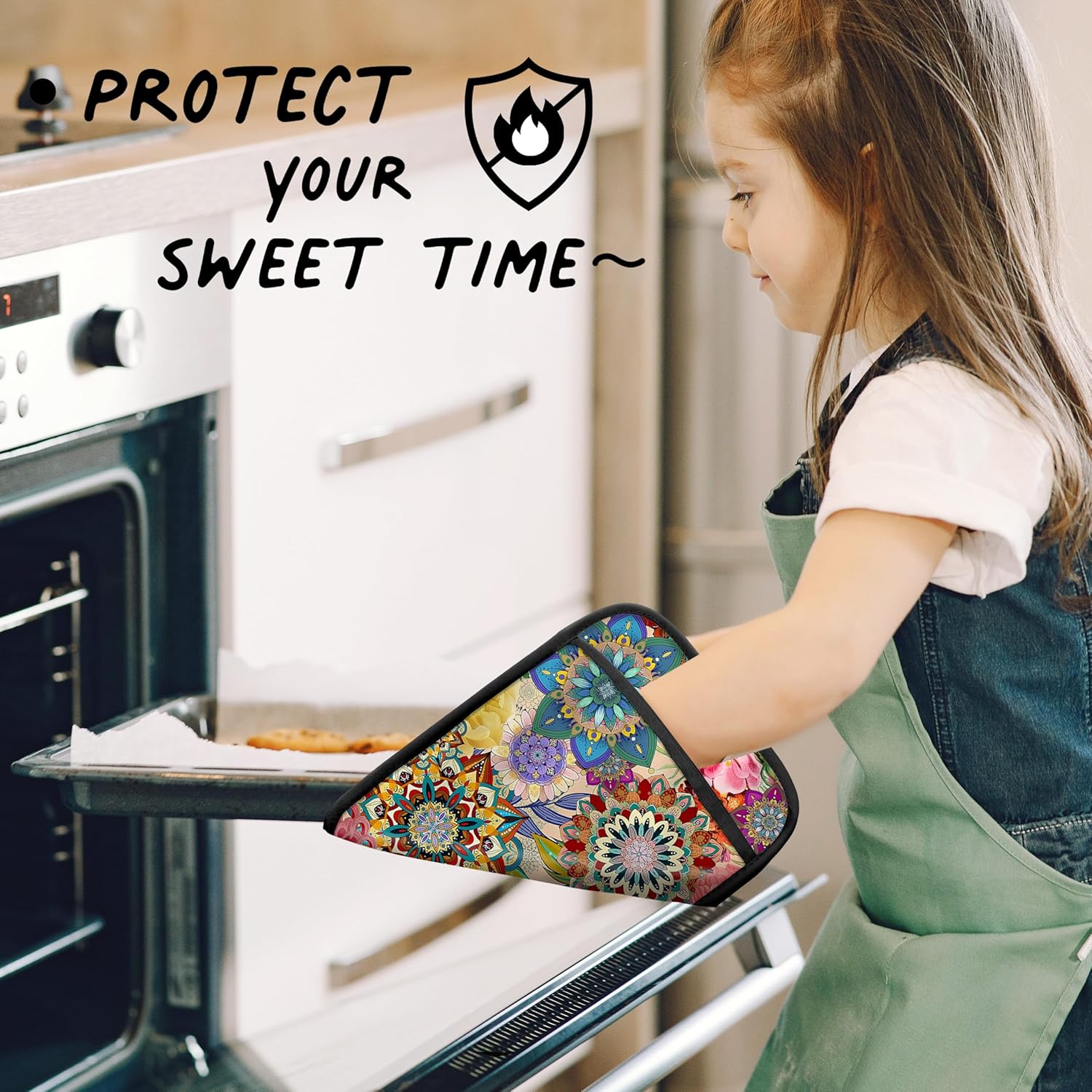 Boho Floral Oven Mitts Set, Vintage Luxury Colorful Flower Floral Heat Resistant Kitchen Oven Gloves for Baking and Cooking,Pot Holders