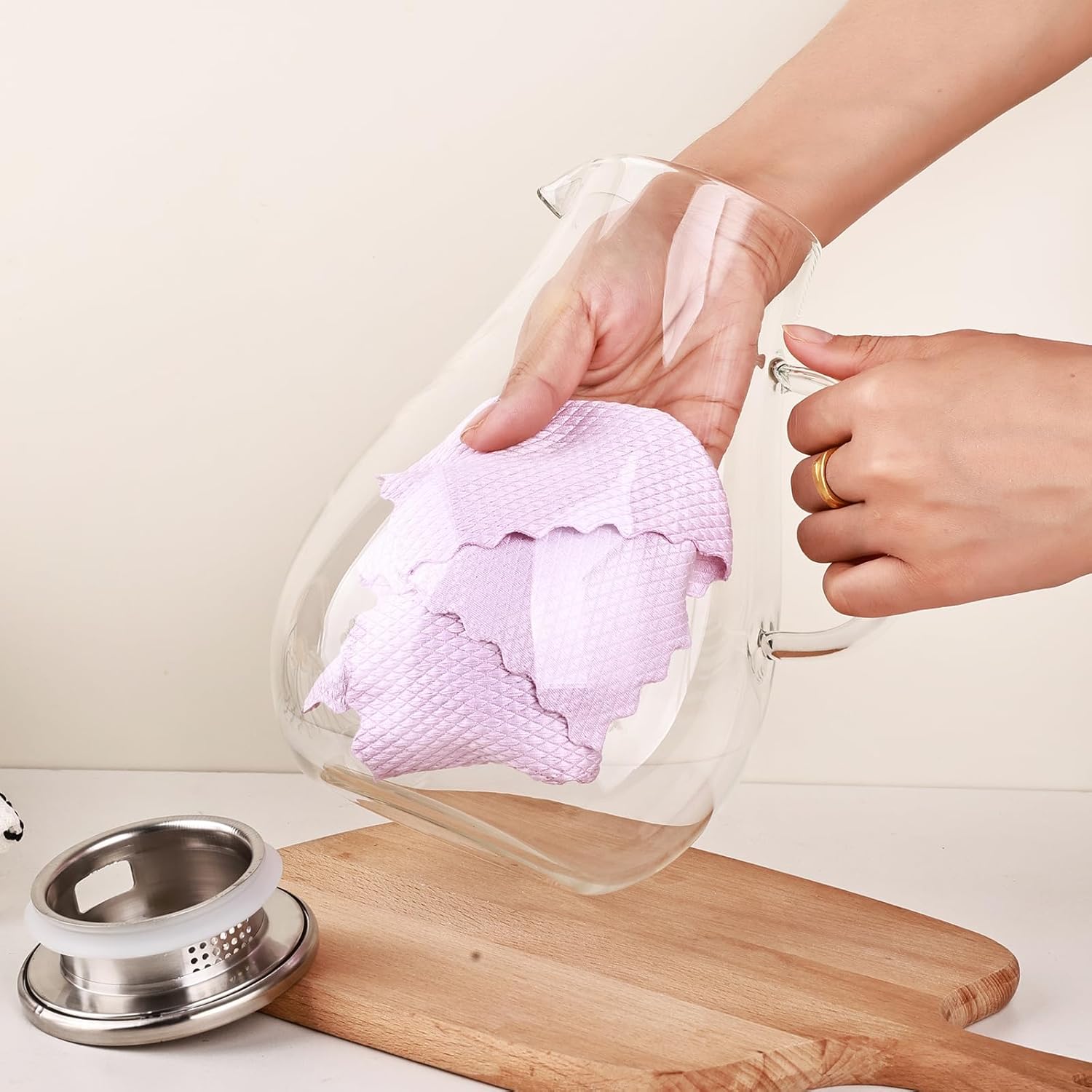 - 【HIGH QUALITY GLASS】100% lead-free, free of any heavy metals and toxins. The pitcher is made of high-quality high-grade borosilicate glass, which is environmentally friendly and recyclable, and can withstand high temperatures of -20~150°C/ -4~302°F. It can be used well in a microwave, dishwasher, or even a refrigerator.