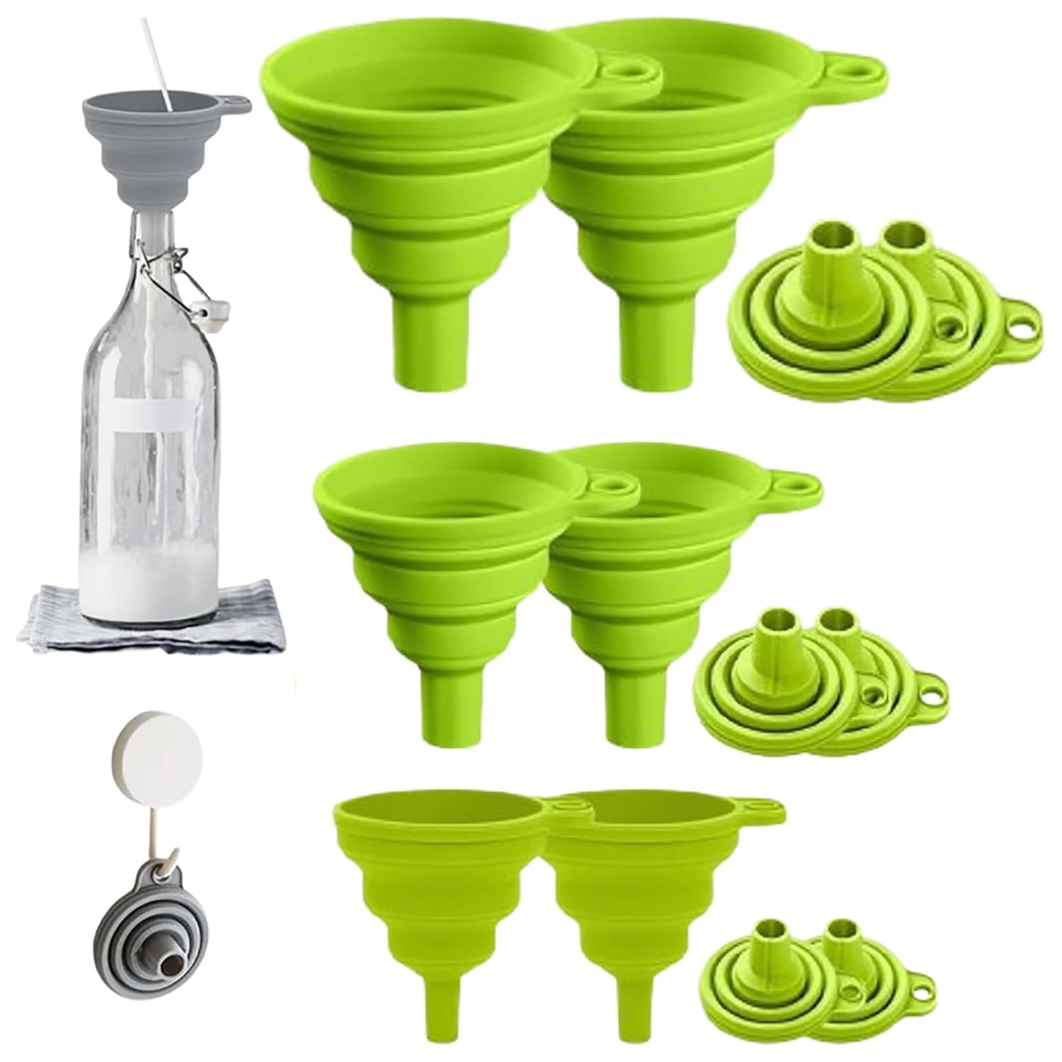 Kitchen Funnel Set, 2025 Upgrade Silicone Collapsible Funnel Silicone Collapsible Food Funnels for Kitchen 3 Sizes Funnels for Home Use Filling Bottles Daily Cooking (Green, 2Set 11+14+20g)
