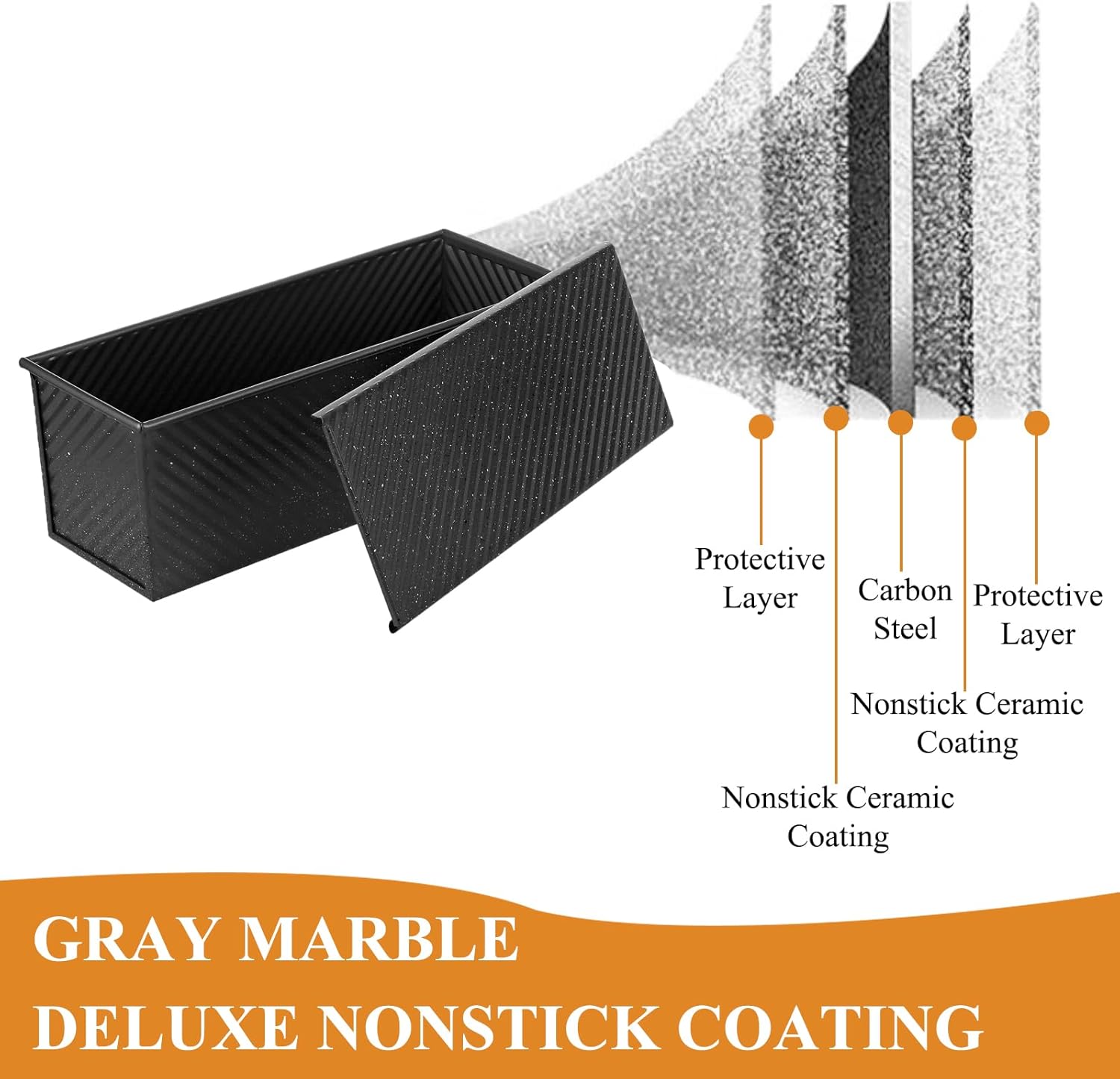 - PREMIUM NONSTCK & EASY CLEAN: Enhanced food-safe PTFE/PFOA-free nonstick coating ensures effortless bread release from bread pan with lid. It is perfect for baking sandwich bread, Japanese milk bread, gluten-free loaves, sourdough, and more.