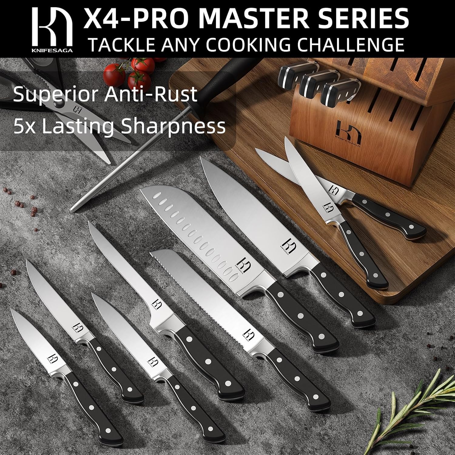 - Ultimate Kitchen Knife Set Investment: Engineered for superior edge retention and durability, Knifesaga block knife sets maintain razor-sharp precision with minimal maintenance, ensuring professional-level performance that stands the test of time.