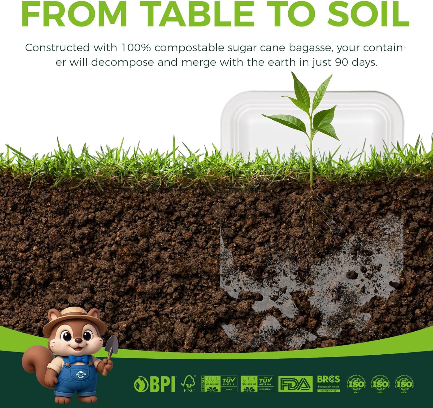 - 【Biodegradable Food Trays Disposable】: Made from sugarcane bagasse fiber, these plastic-free, tree-free white disposable trays decompose in 90 days (commercial composting). Perfect for eco-conscious catering, restaurants, and sustainable events.