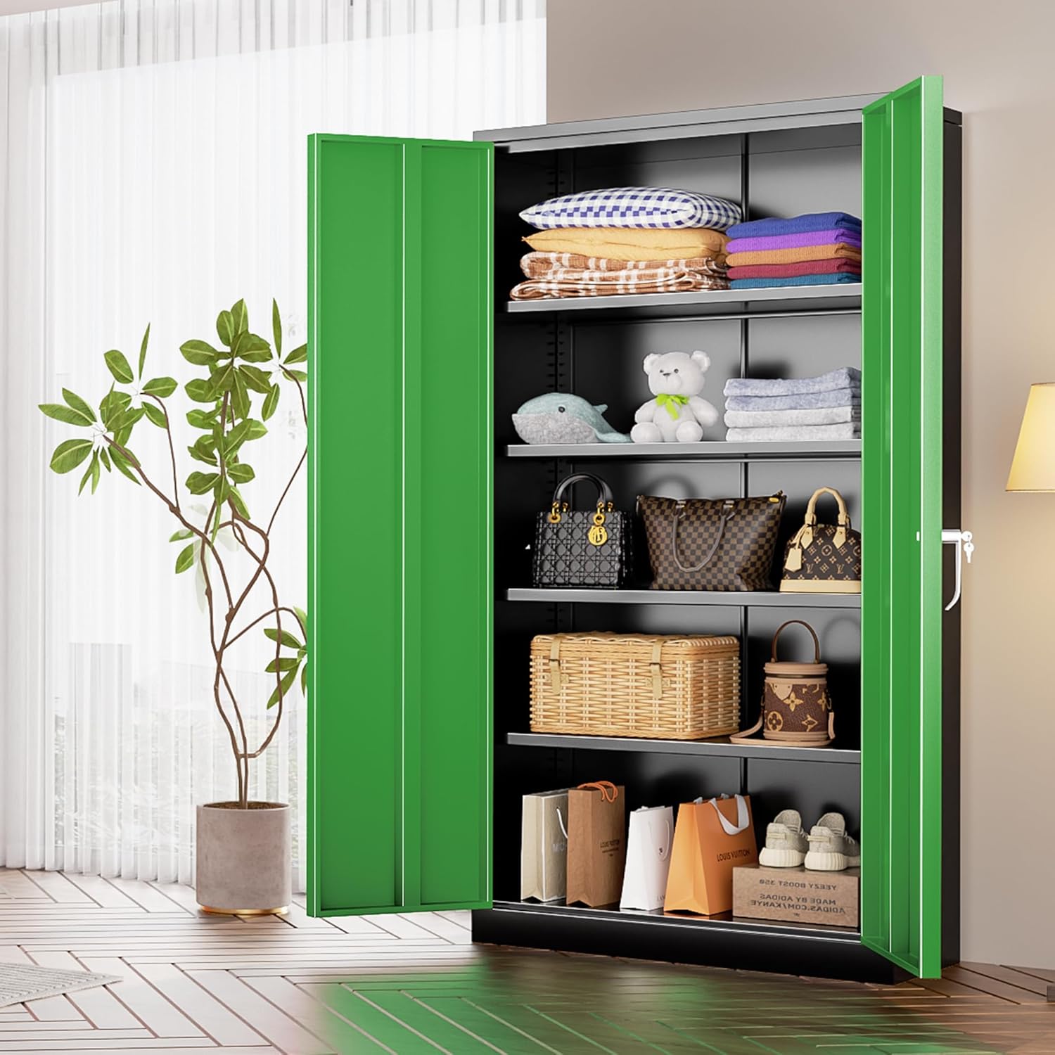 - 【Large space storage】:Intergreat new 2025 upgraded oversized metal file cabinet, 72 X 32 X 16 inch huge black green metal storage cabinet can meet most storage needs. The lockable steel garage storage system cabinet with two doors comes with four removable shelves to hold different-sized items as needed. Tool steel storage cabinets are a good choice for businesses.