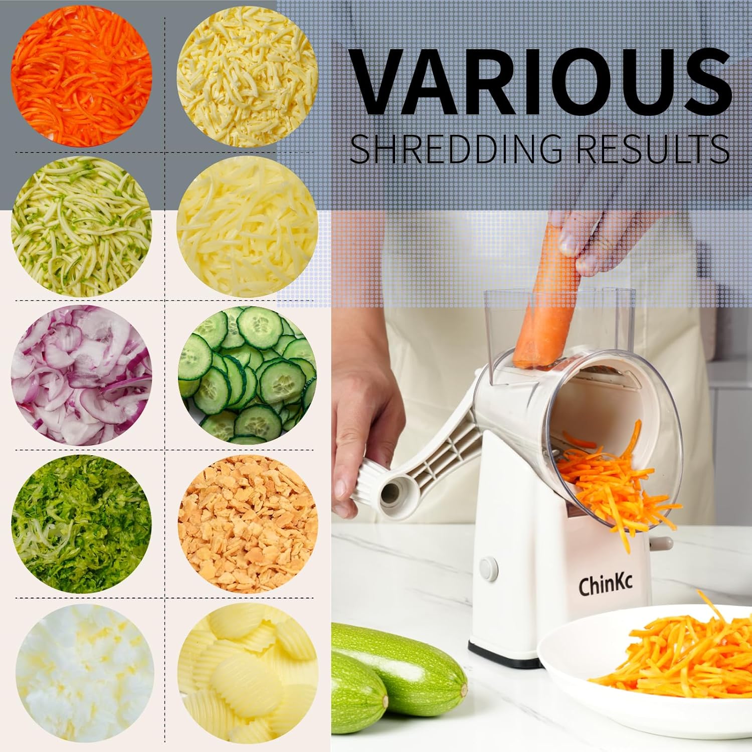 Rotary Cheese Grater Shredder - Upgraded 5 in 1 Cheese Grater with Handle and Strong Suction Base, Multi-purpose Julienne Slicer Ice Shaver Nuts Grinder for Ice, Vegetables, Fruit, Nuts