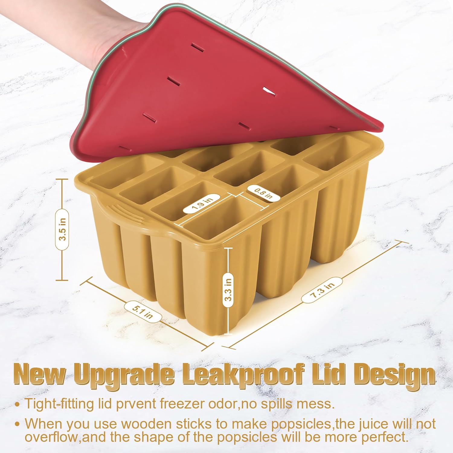 - đăAdequate Capacity and User-Friendly SizeăYou can get 12 popsicles at once, with each popsicle unit being spacious at 3.35 inches long, enough to accommodate rich ingredients, create colorful flavors, and also considering the comfort of handheld, making it very suitable for family members to share delicious moments.